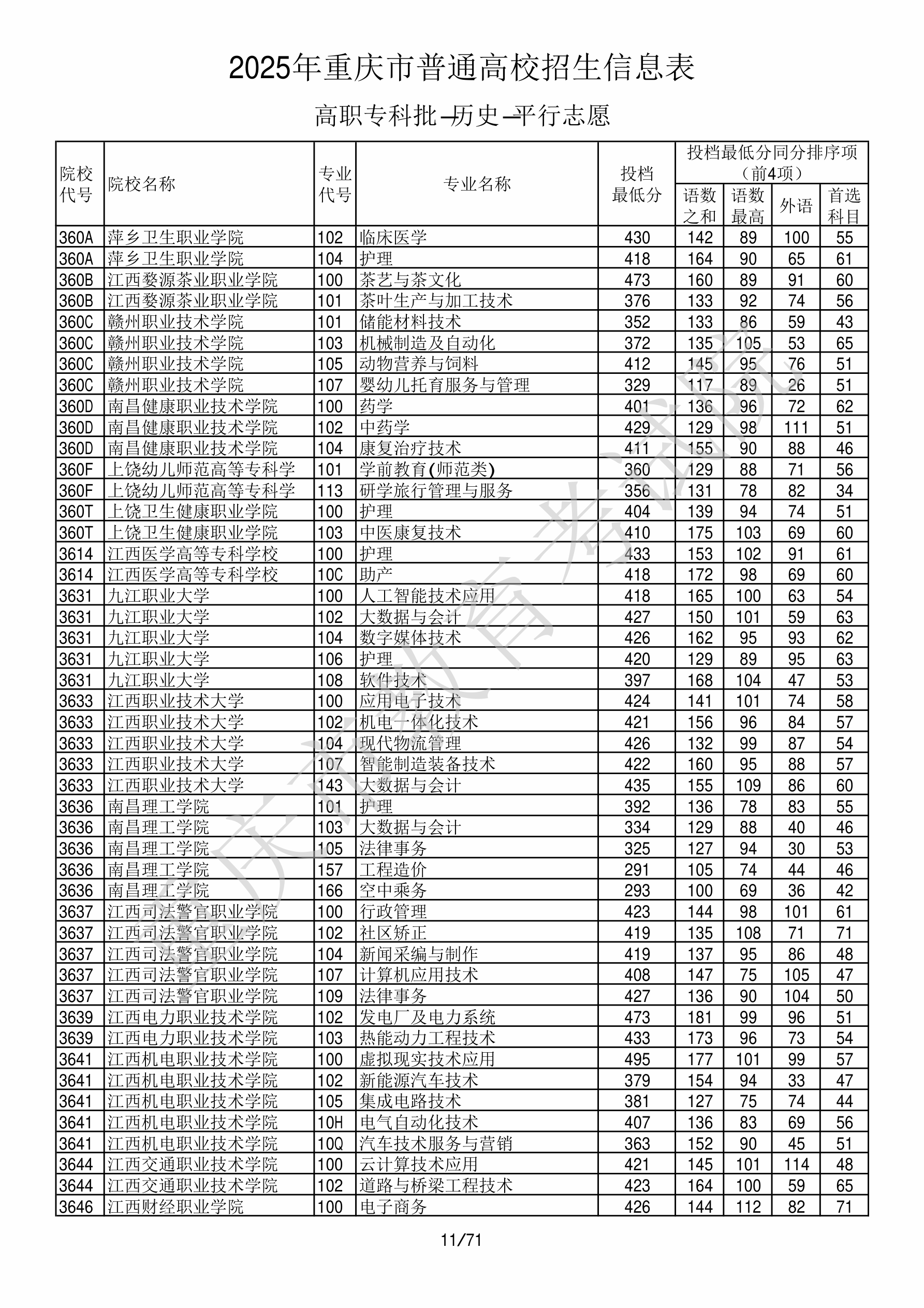 2025年重庆高考普通类高职(专科)批 江西机电职业技术学院 的 虚拟现实技术应用 专业录取分数溯源信息