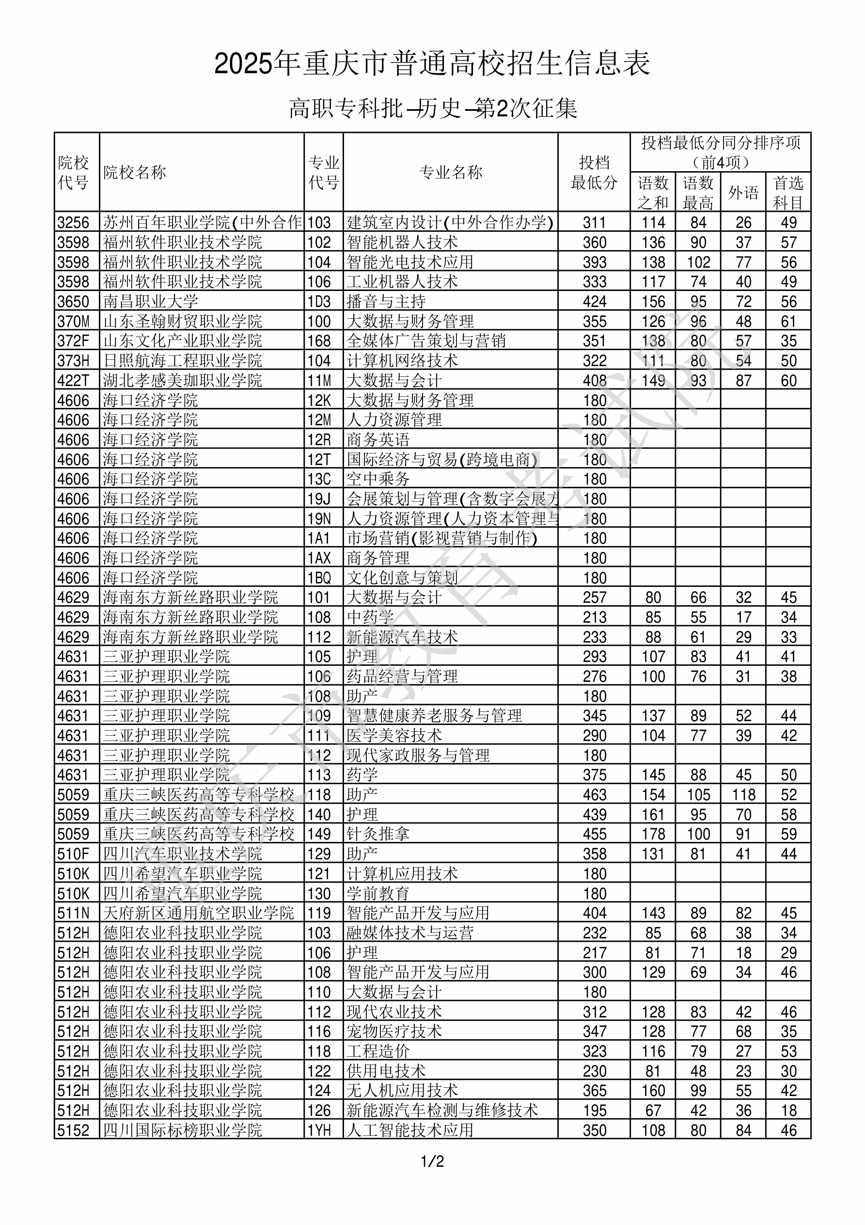 2025年重庆高考普通类高职(专科)批 山东圣翰财贸职业学院 的 大数据与财务管理 专业录取分数溯源信息