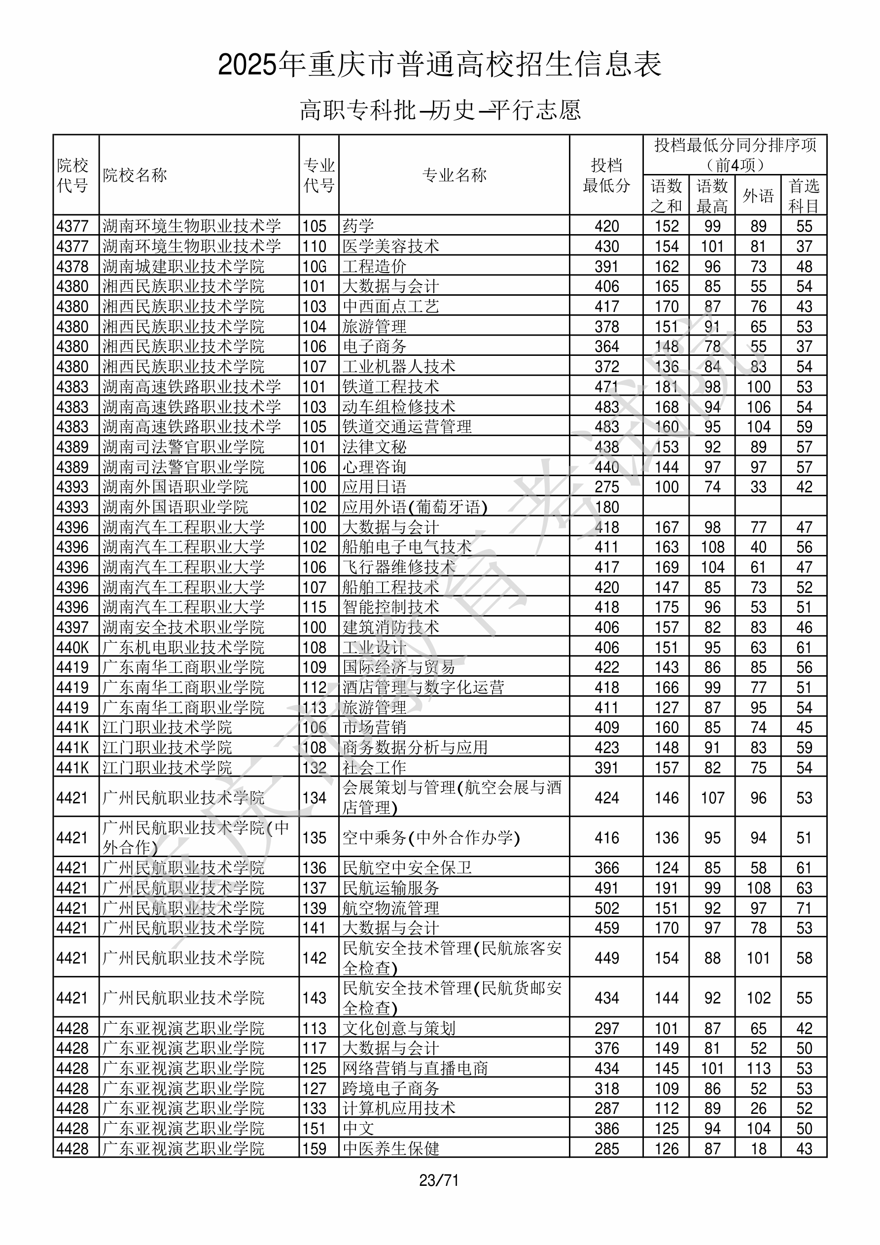 2025年重庆高考普通类高职(专科)批 湖南城建职业技术学院 的 工程造价 专业录取分数溯源信息