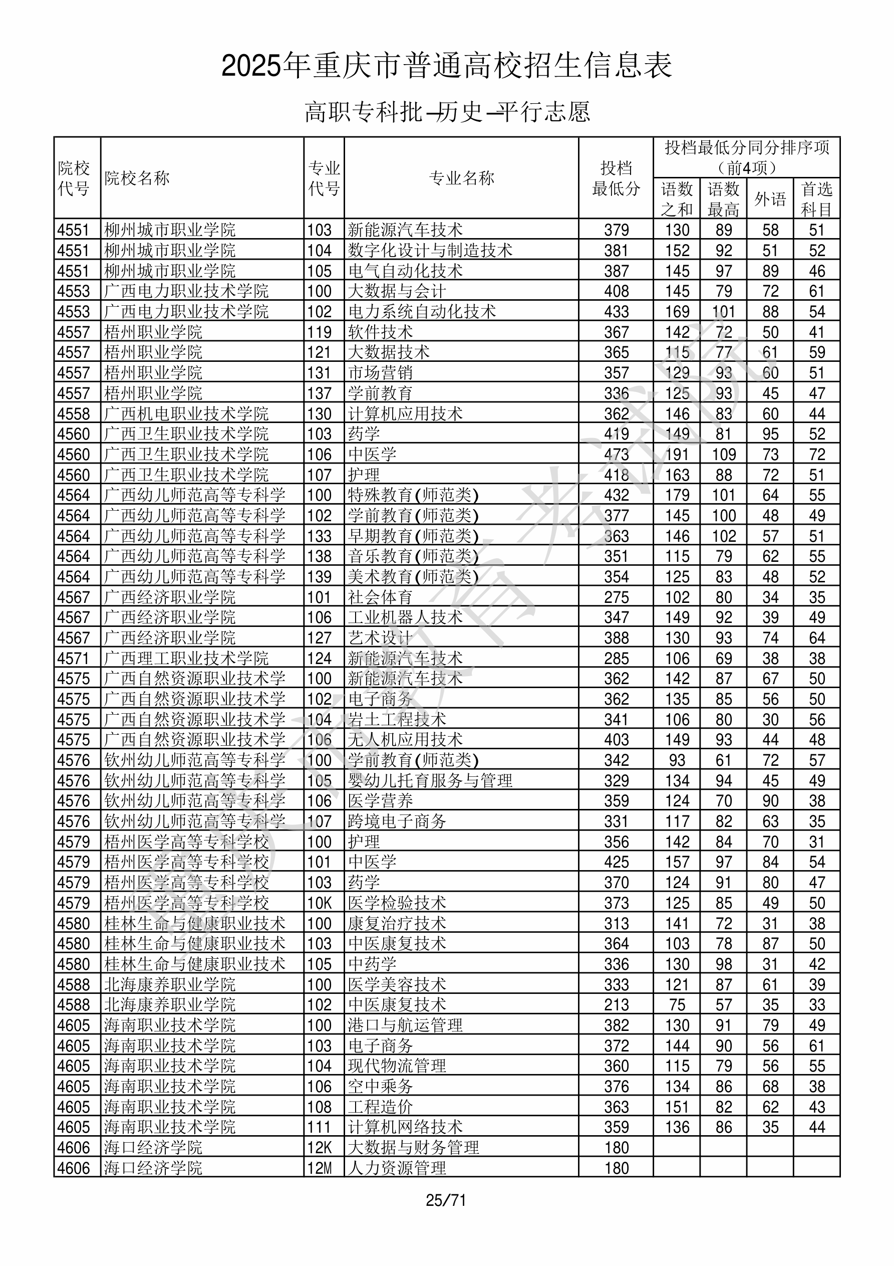 2025年重庆高考普通类高职(专科)批 广西电力职业技术学院 的 电力系统自动化技术 专业录取分数溯源信息