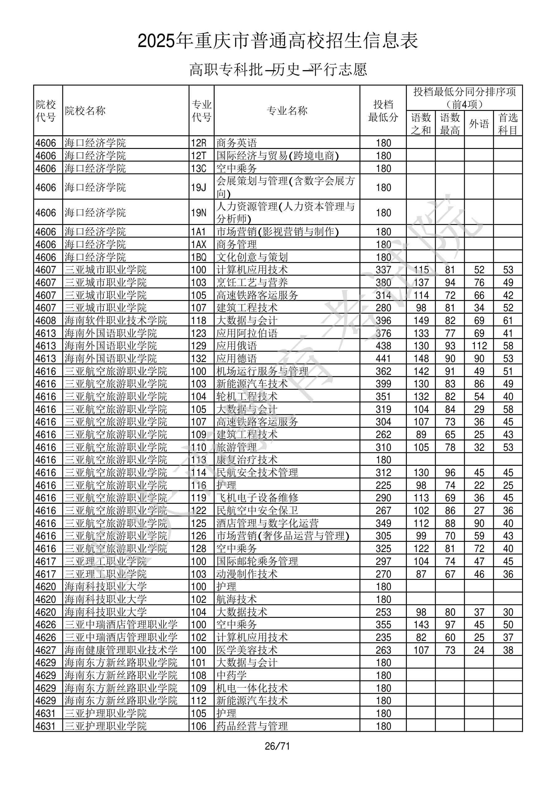 2025年重庆高考普通类高职(专科)批 海南东方新丝路职业学院 的 新能源汽车技术 专业录取分数溯源信息