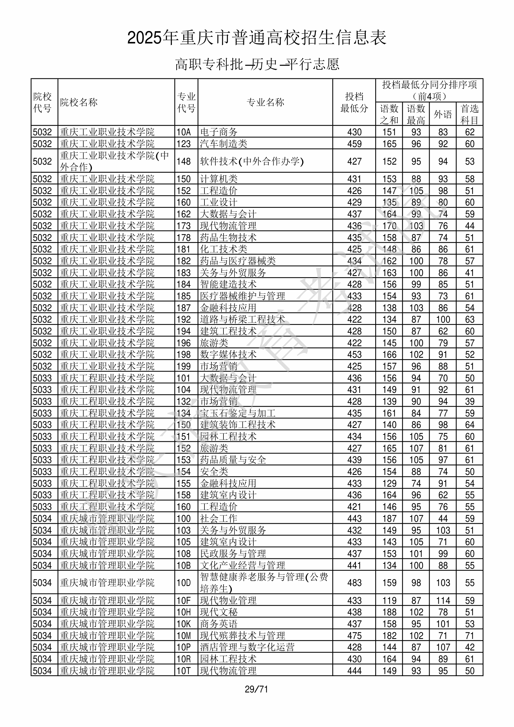 2025年重庆高考普通类高职(专科)批 重庆工业职业技术学院 的 现代物流管理 专业录取分数溯源信息
