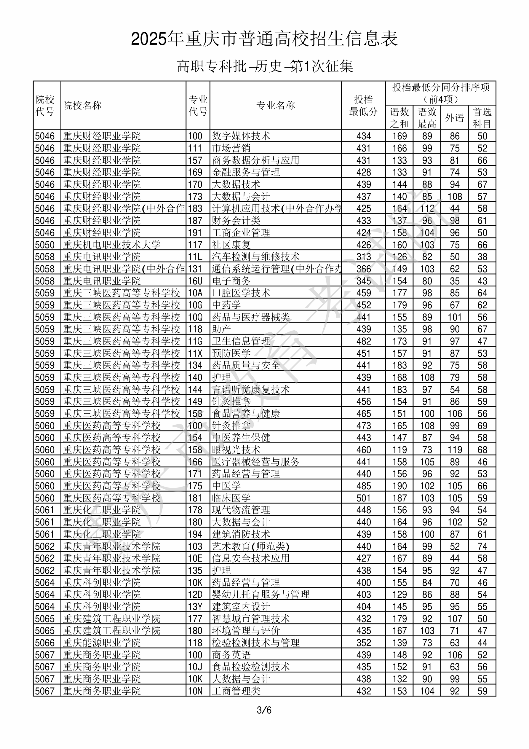 | 5046 | 重庆财经职业学院 | 169 | 金融服务与管理 | 393 | 48709 | 专科 | 历史 ,再选: 不限 | 1,2 |