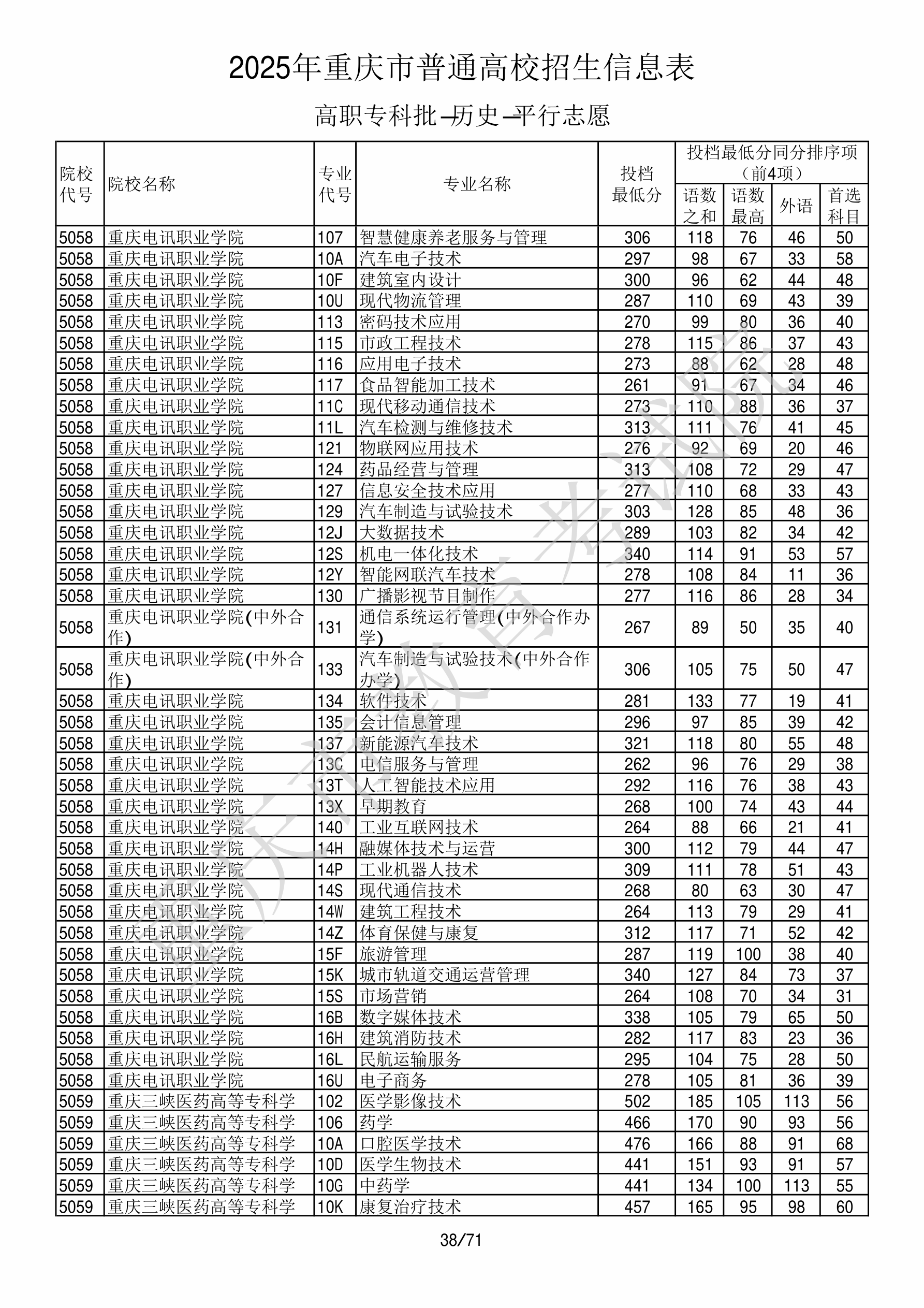 2025年重庆高考普通类高职(专科)批 重庆三峡医药高等专科学校 的 药学 专业录取分数溯源信息