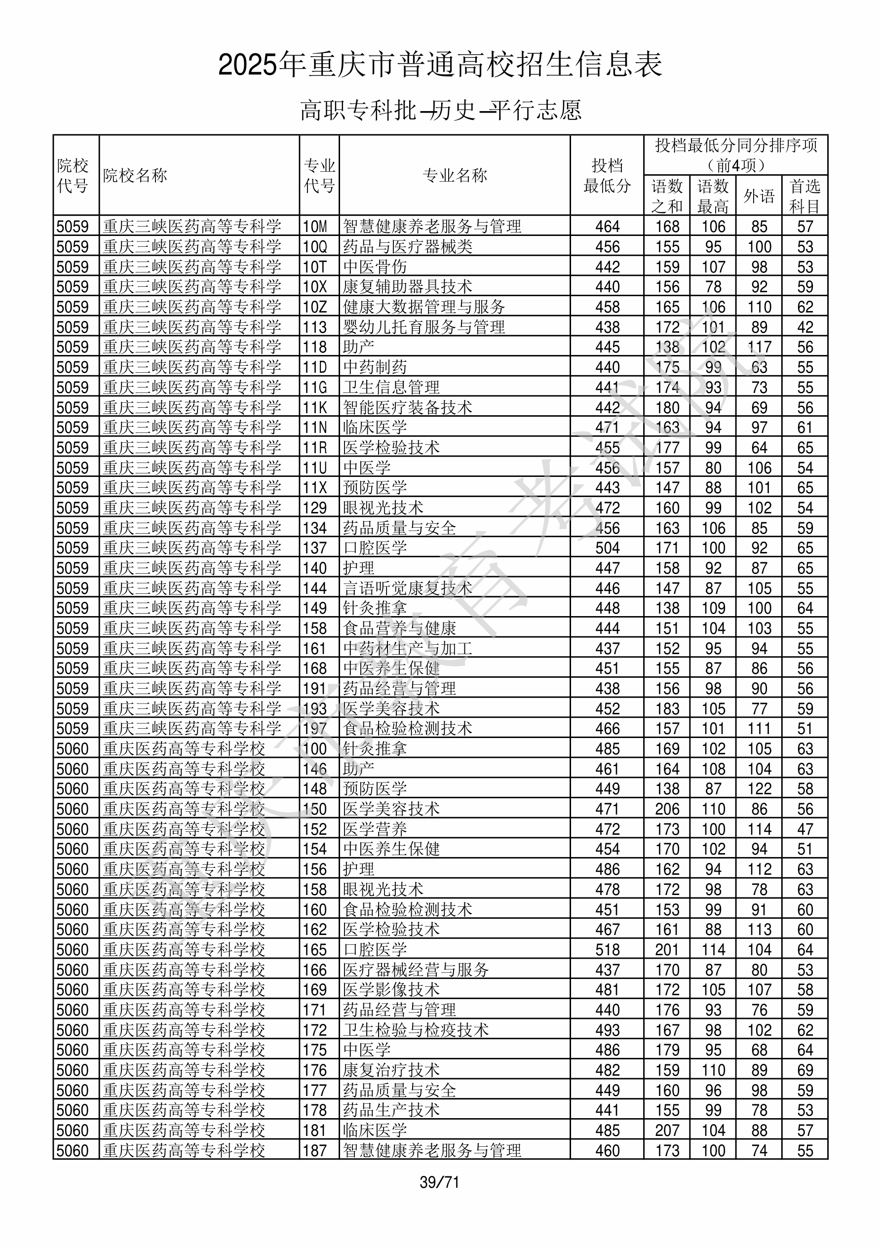 2025年重庆高考普通类高职(专科)批 重庆三峡医药高等专科学校 的 智能医疗装备技术 专业录取分数溯源信息
