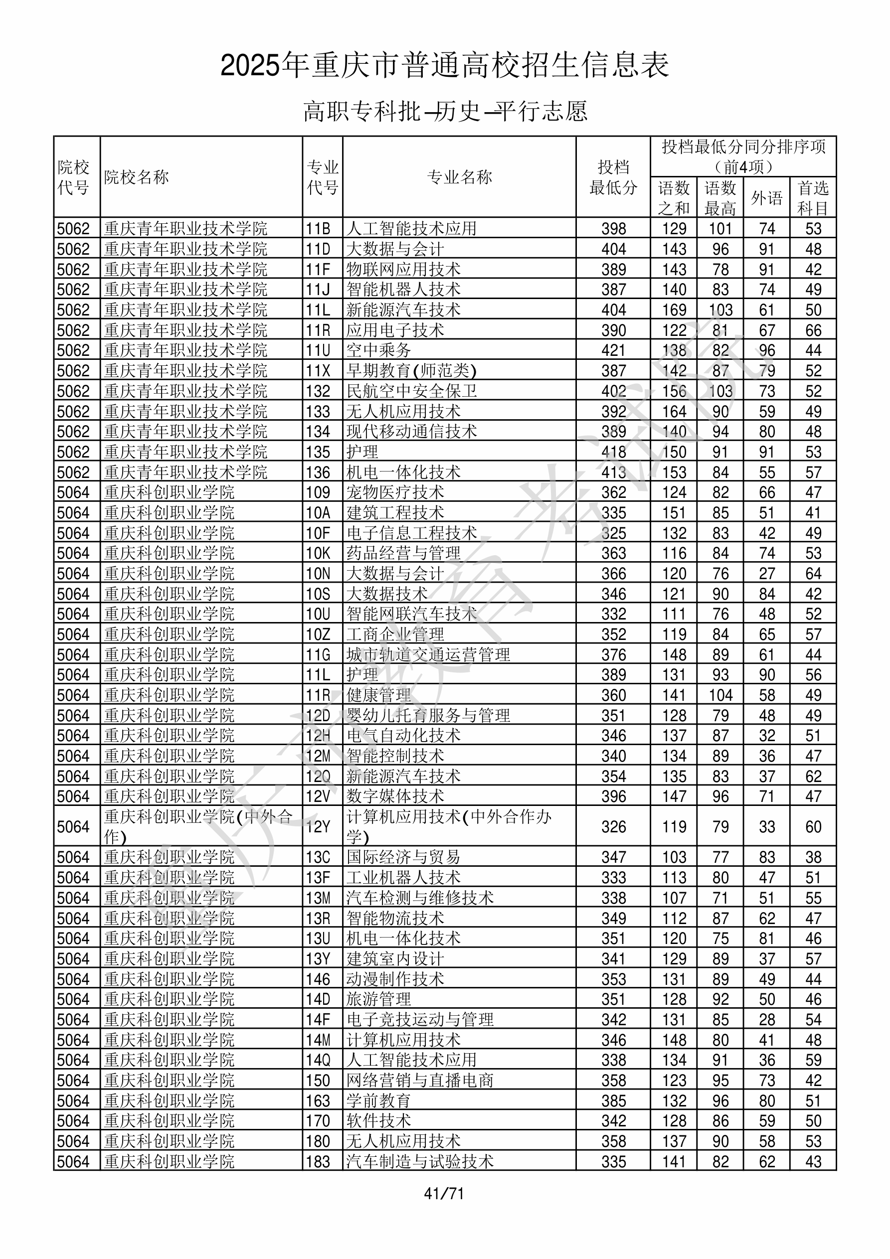 2025年重庆高考普通类高职(专科)批 重庆科创职业学院 的 电气自动化技术 专业录取分数溯源信息