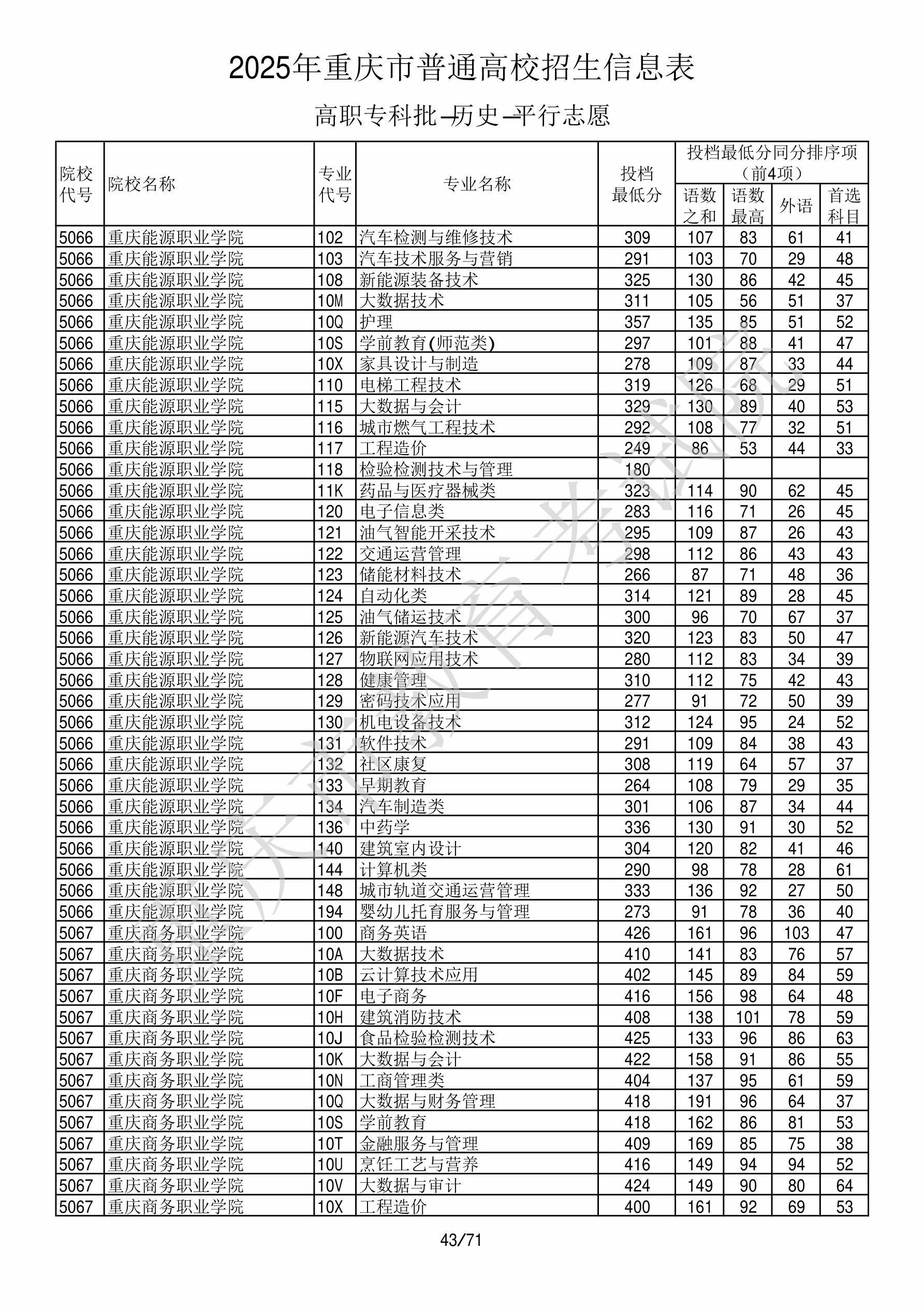2025年重庆高考普通类高职(专科)批 重庆商务职业学院 的 电子商务 专业录取分数溯源信息