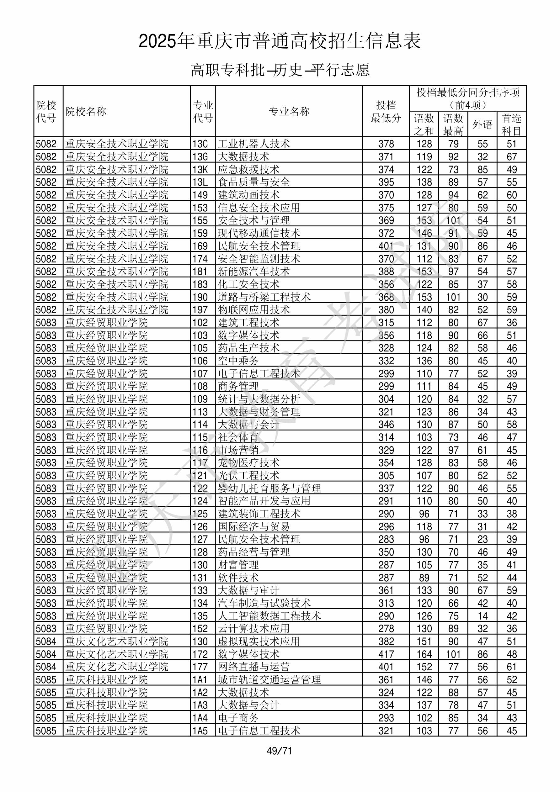 2025年重庆高考普通类高职(专科)批 重庆经贸职业学院 的 宠物医疗技术 专业录取分数溯源信息