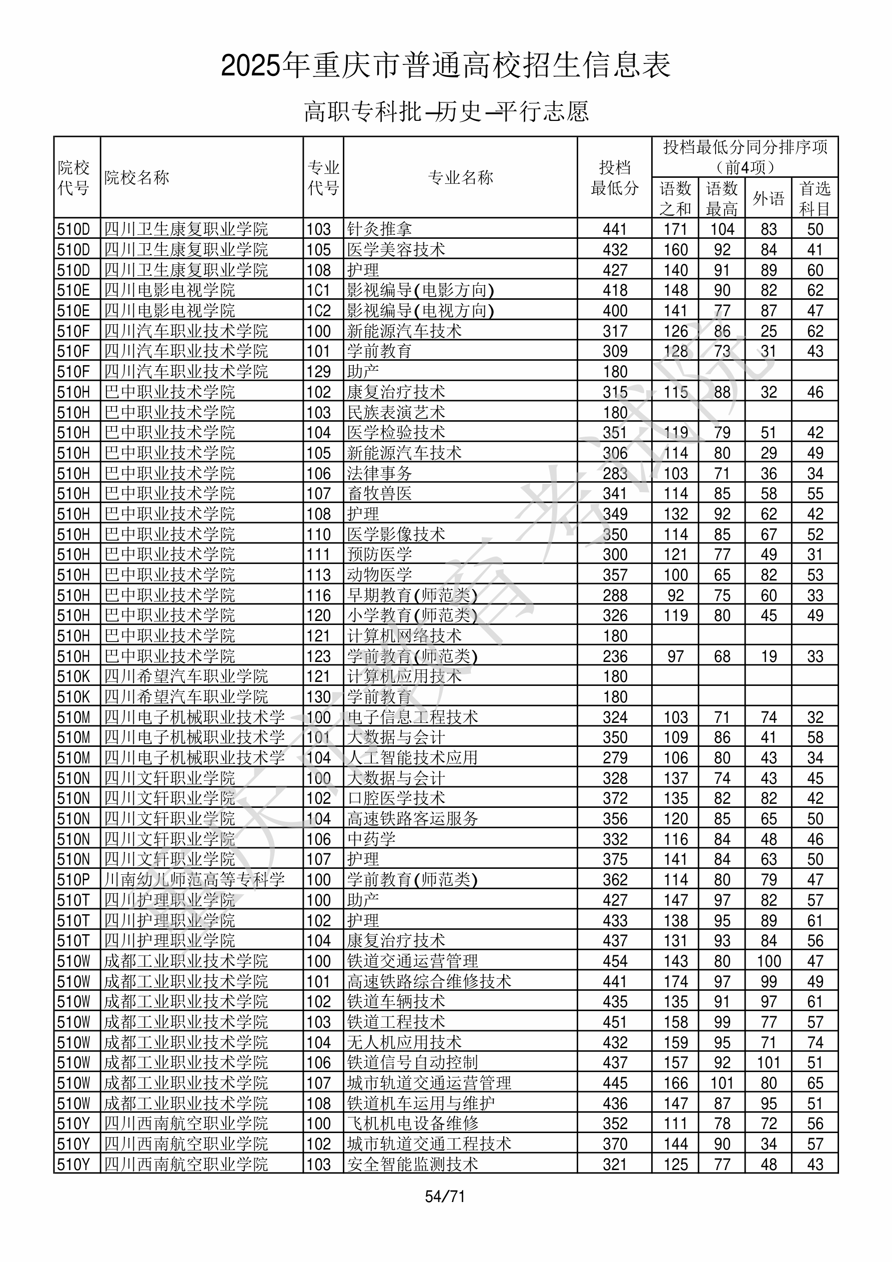 2025年重庆高考普通类高职(专科)批 四川电影电视学院 的 影视编导 专业录取分数溯源信息