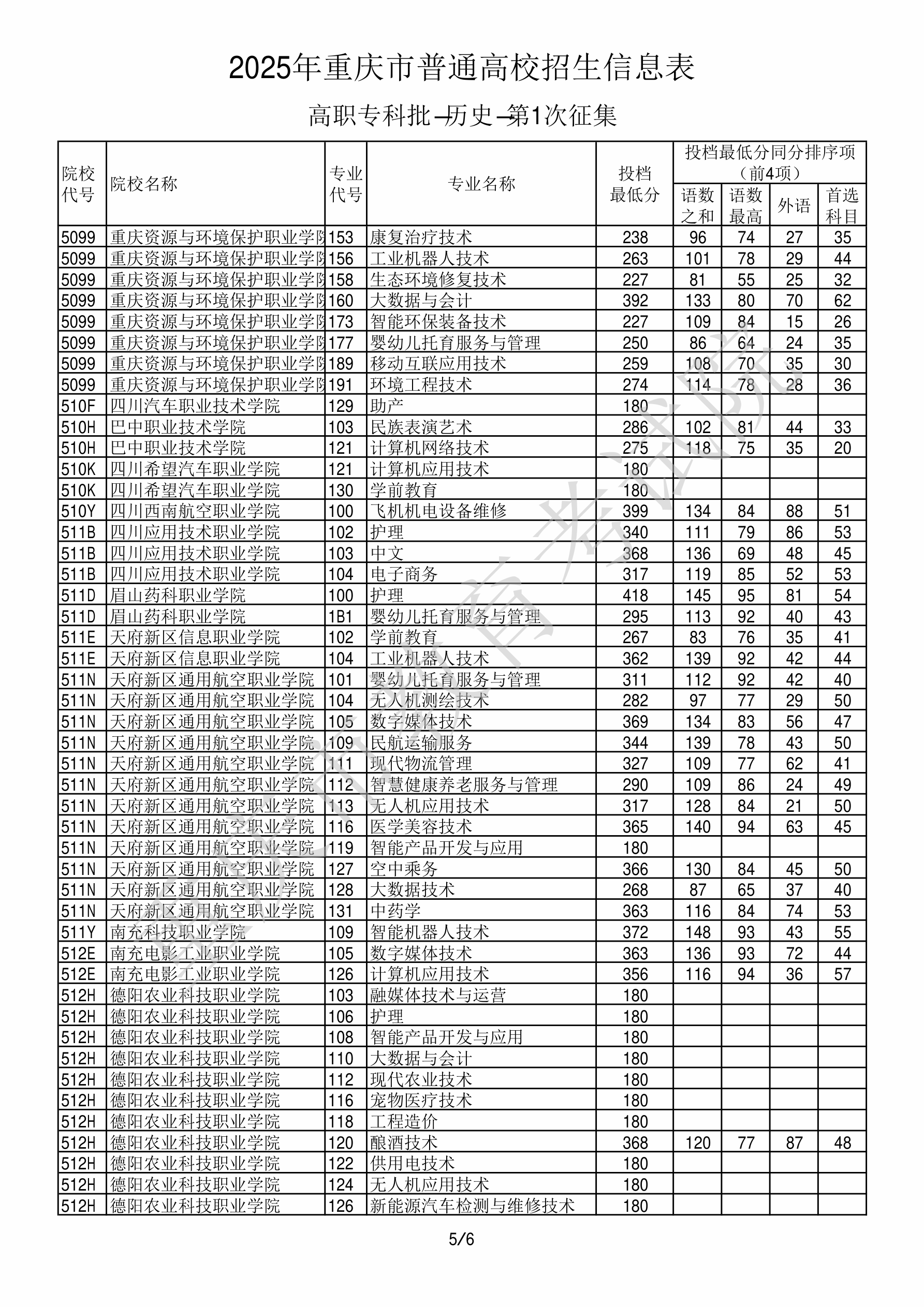 2025年重庆高考普通类高职(专科)批 眉山药科职业学院 的 婴幼儿托育服务与管理 专业录取分数溯源信息