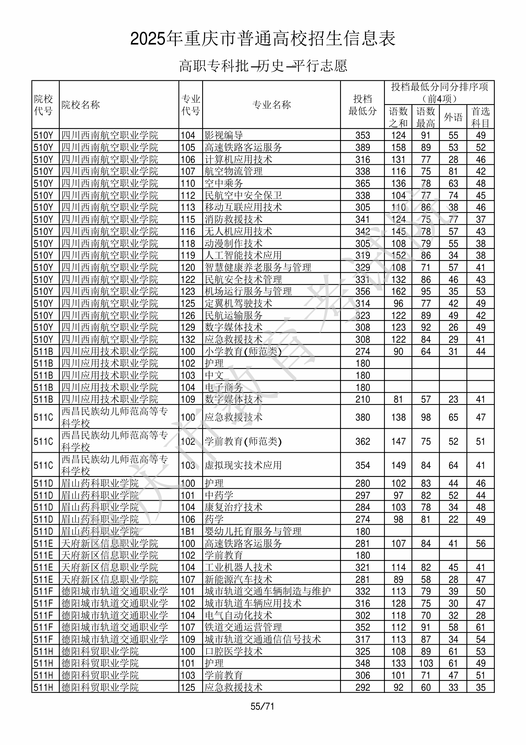 2025年重庆高考普通类高职(专科)批 德阳科贸职业学院 的 口腔医学技术 专业录取分数溯源信息