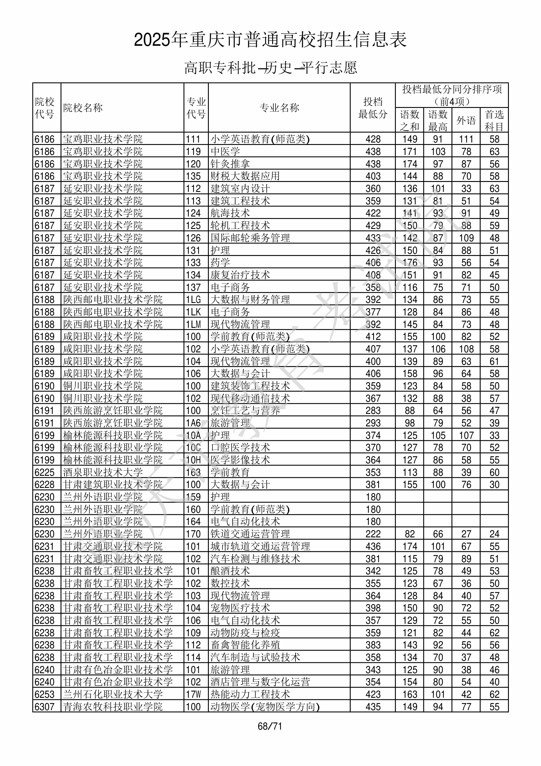 2025年重庆高考普通类高职(专科)批 榆林能源科技职业学院 的 医学影像技术 专业录取分数溯源信息