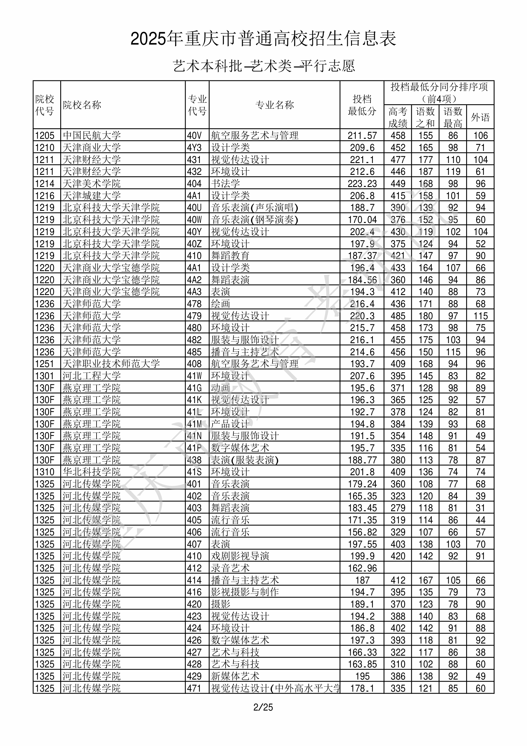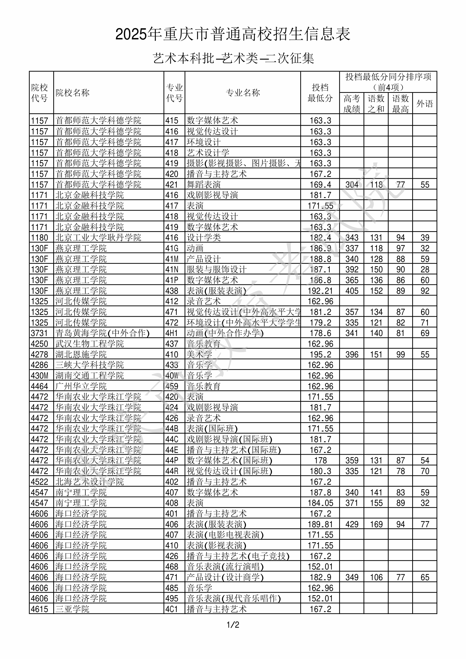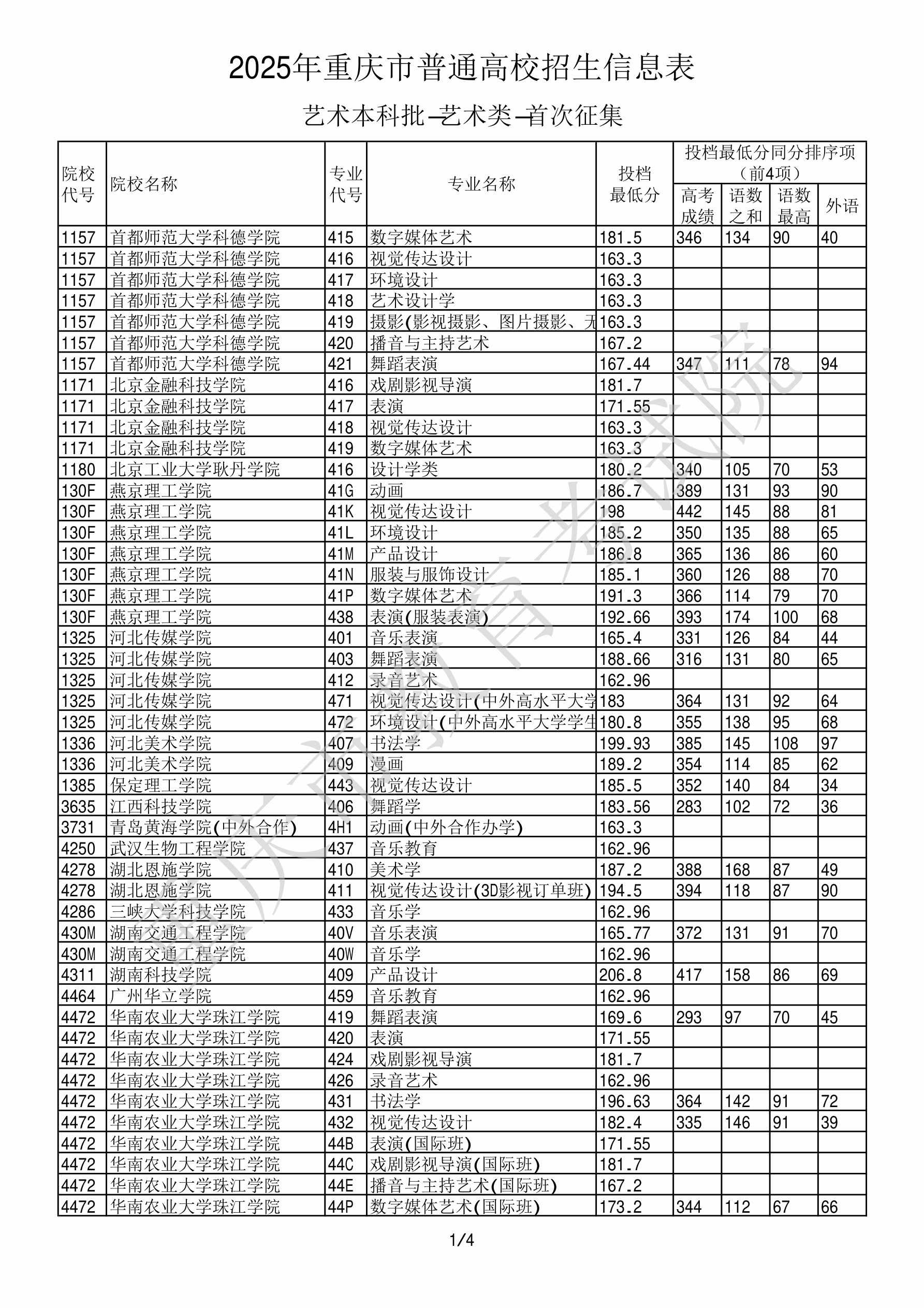 2025年重庆高考艺术类本科批美术与设计类 燕京理工学院 的 数字媒体艺术 专业录取分数溯源信息