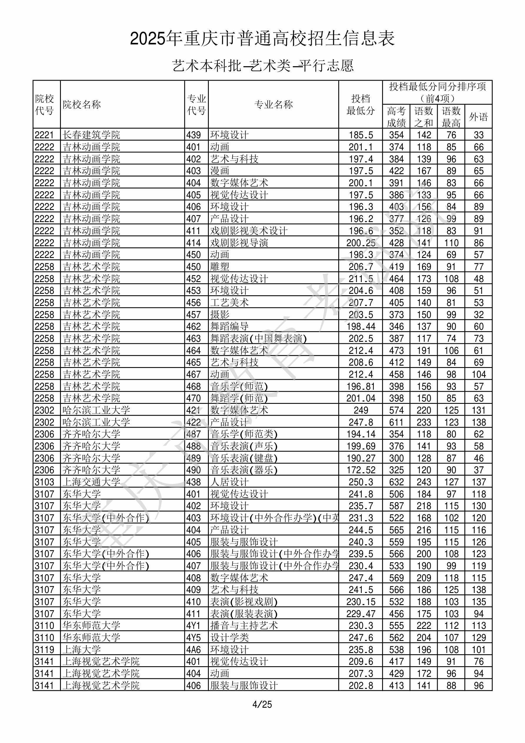 2025年重庆高考艺术类本科批美术与设计类 上海视觉艺术学院 的 动画 专业录取分数溯源信息