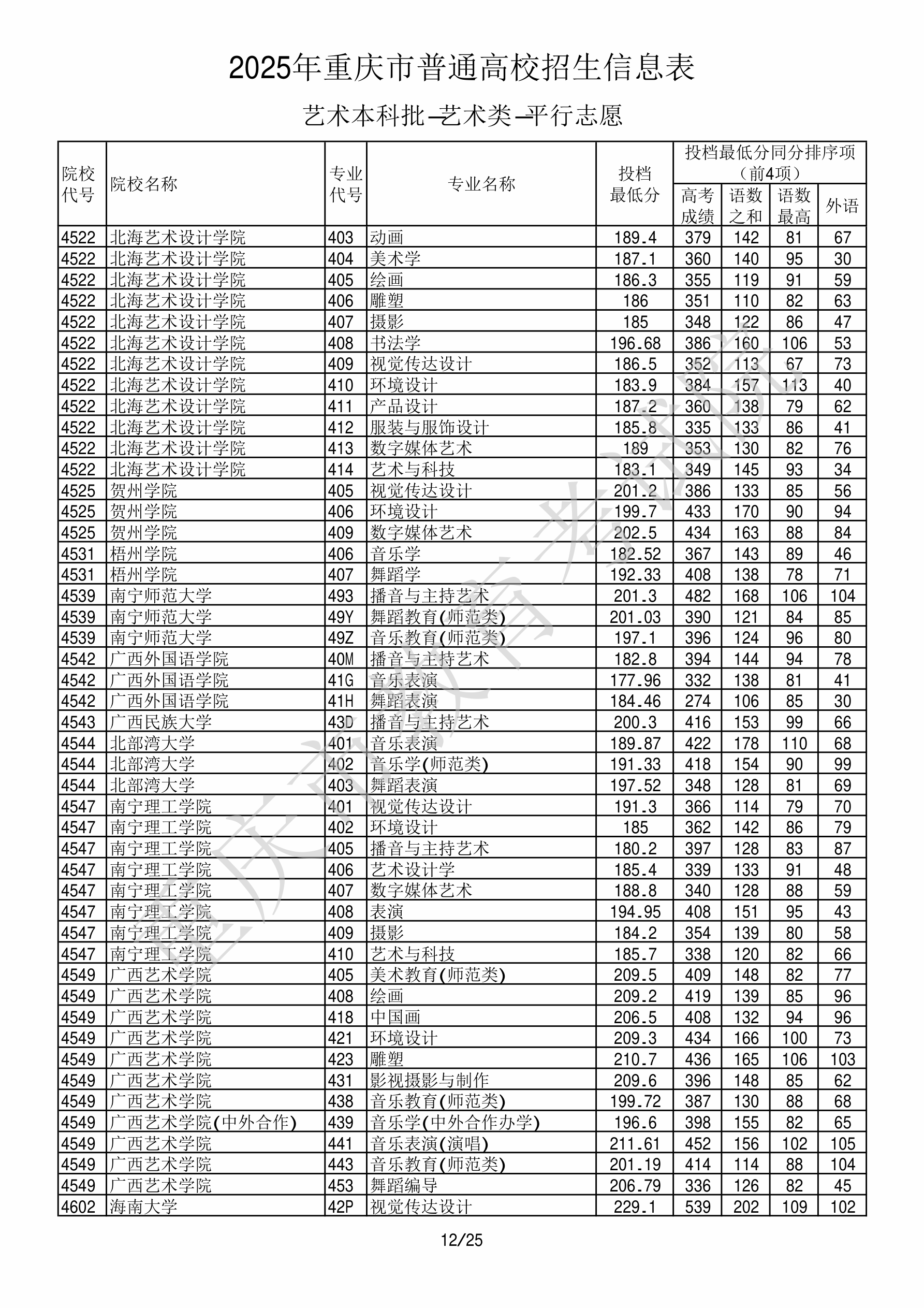 2025年重庆高考艺术类本科批美术与设计类 南宁理工学院 的 视觉传达设计 专业录取分数溯源信息