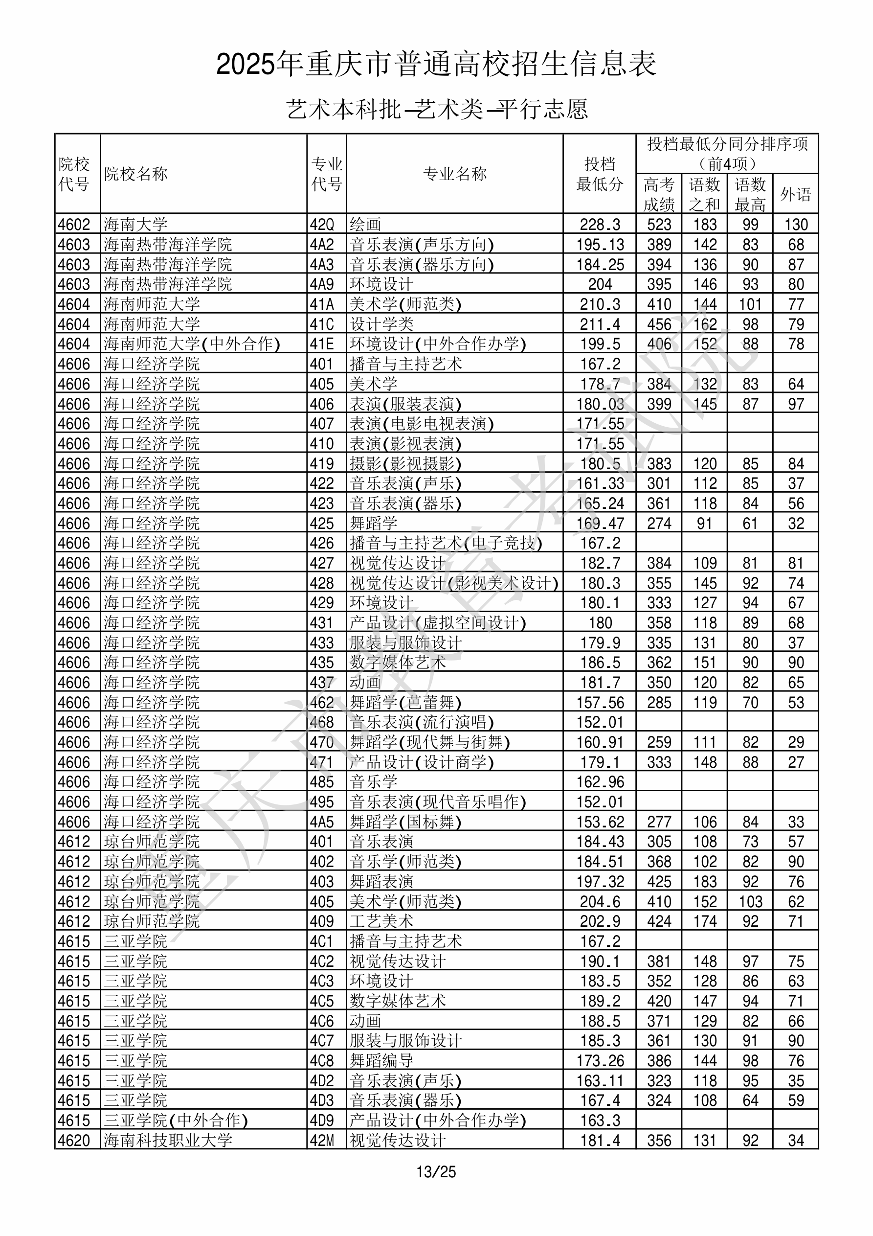 2025年重庆高考艺术类本科批美术与设计类 琼台师范学院 的 工艺美术 专业录取分数溯源信息
