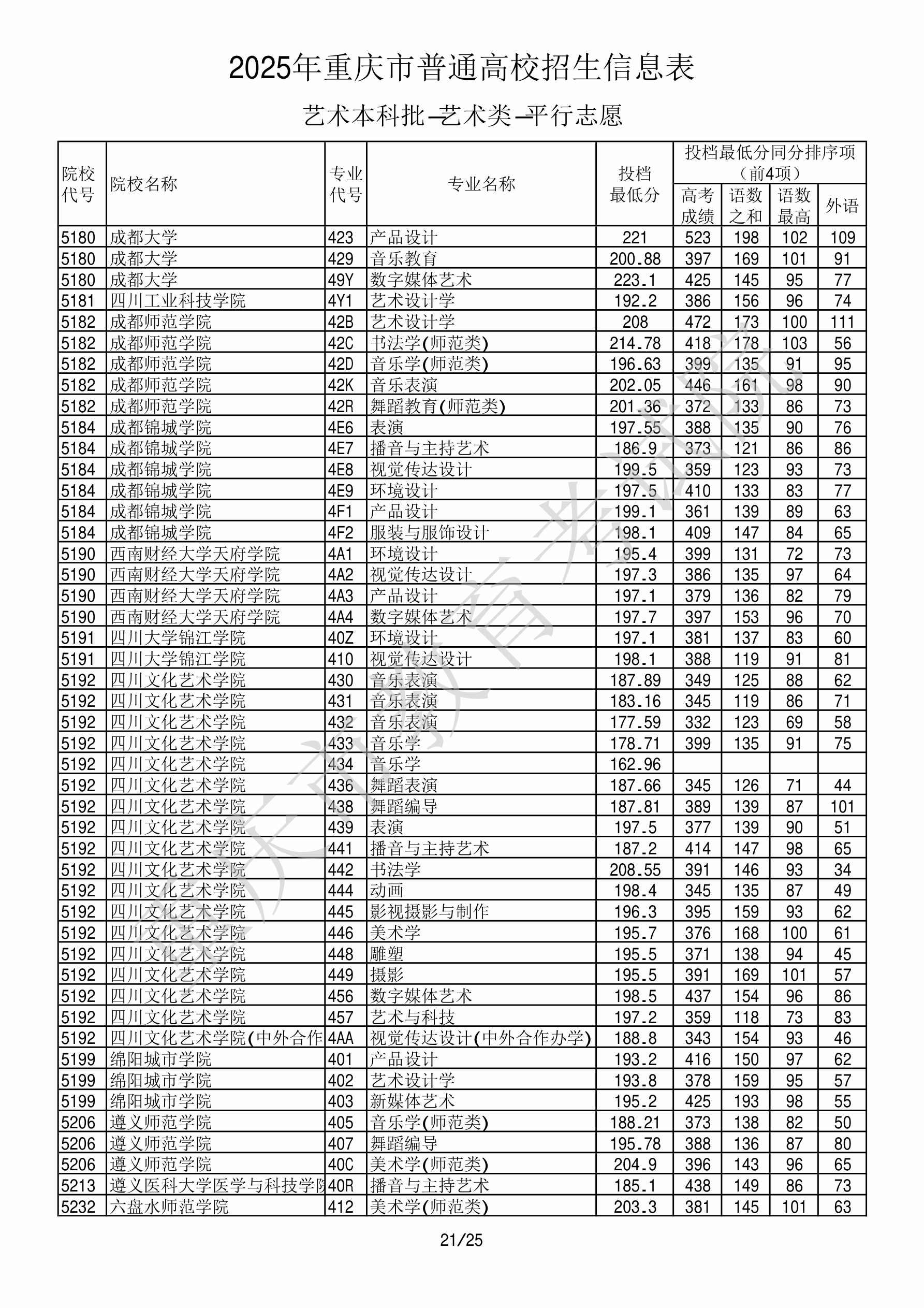 2025年重庆高考艺术类本科批美术与设计类 成都大学 的 产品设计 专业录取分数溯源信息