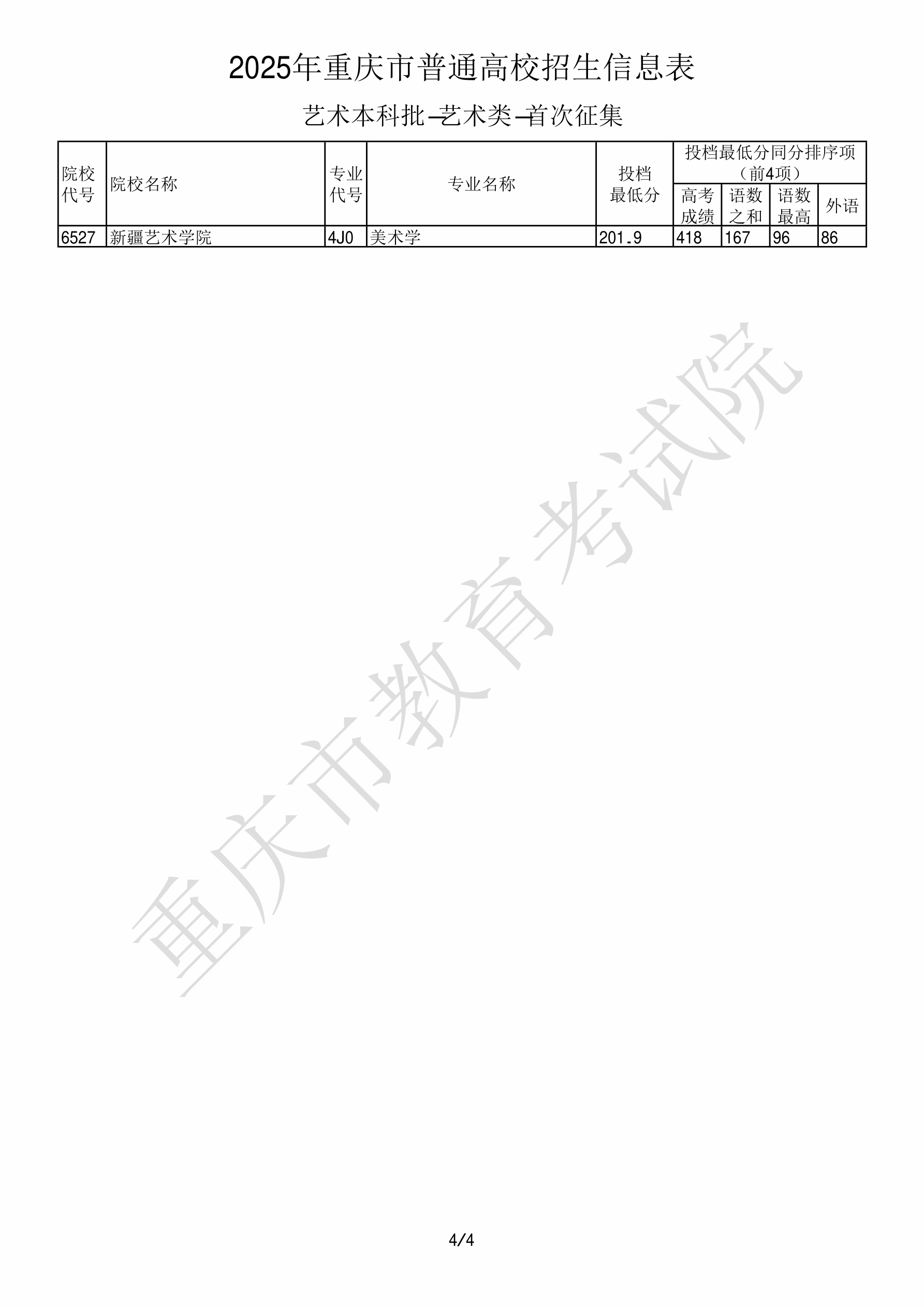 2025年重庆高考艺术类本科批美术与设计类 新疆艺术学院 的 美术学 专业录取分数溯源信息