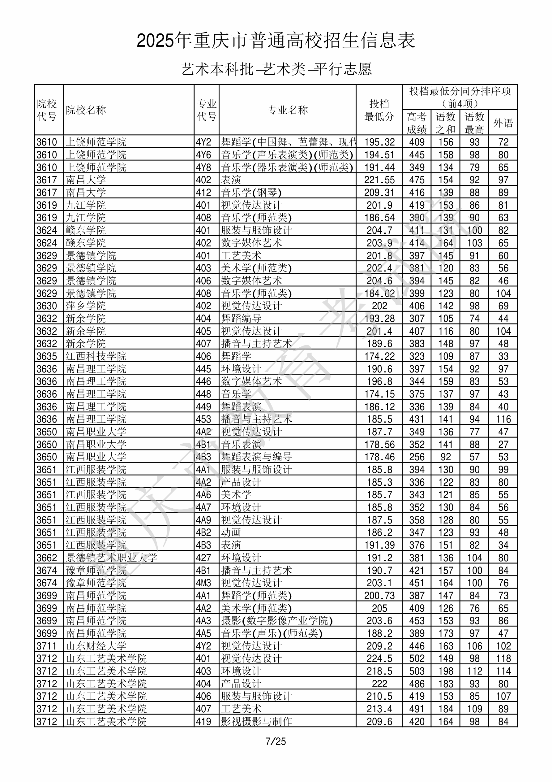 2025年重庆高考艺术类本科批音乐类教育类 南昌师范学院 的 音乐学 专业录取分数溯源信息