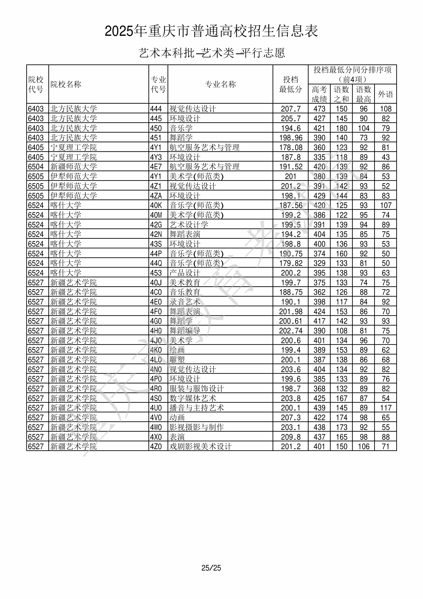 2025年重庆高考艺术类本科批音乐类教育类 新疆艺术学院 的 录音艺术 专业录取分数溯源信息