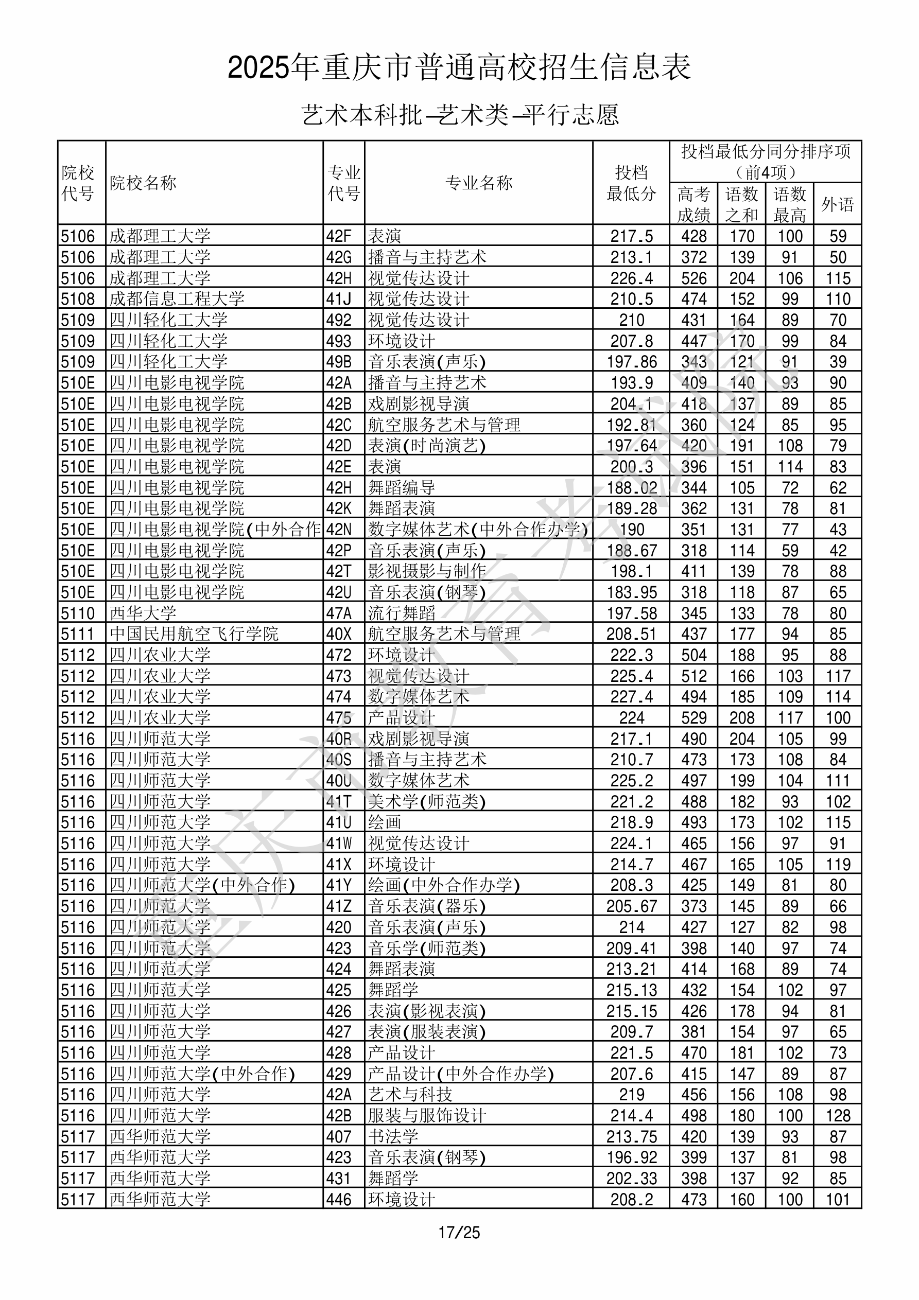 2025年重庆高考艺术类本科批音乐类表演类声乐方向 四川电影电视学院 的 音乐表演 专业录取分数溯源信息
