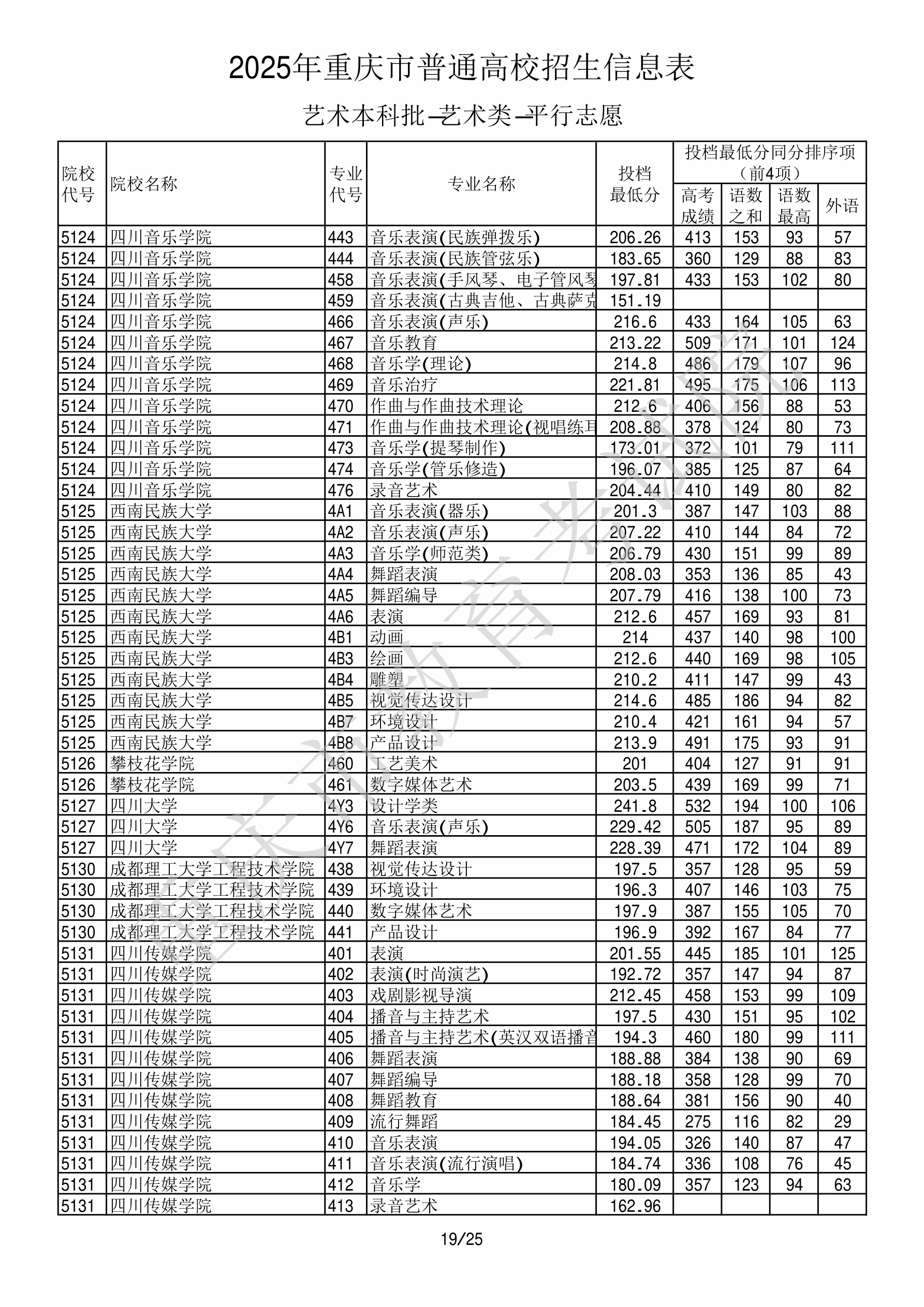 2025年重庆高考艺术类本科批音乐类表演类器乐方向 西南民族大学 的 音乐表演 专业录取分数溯源信息