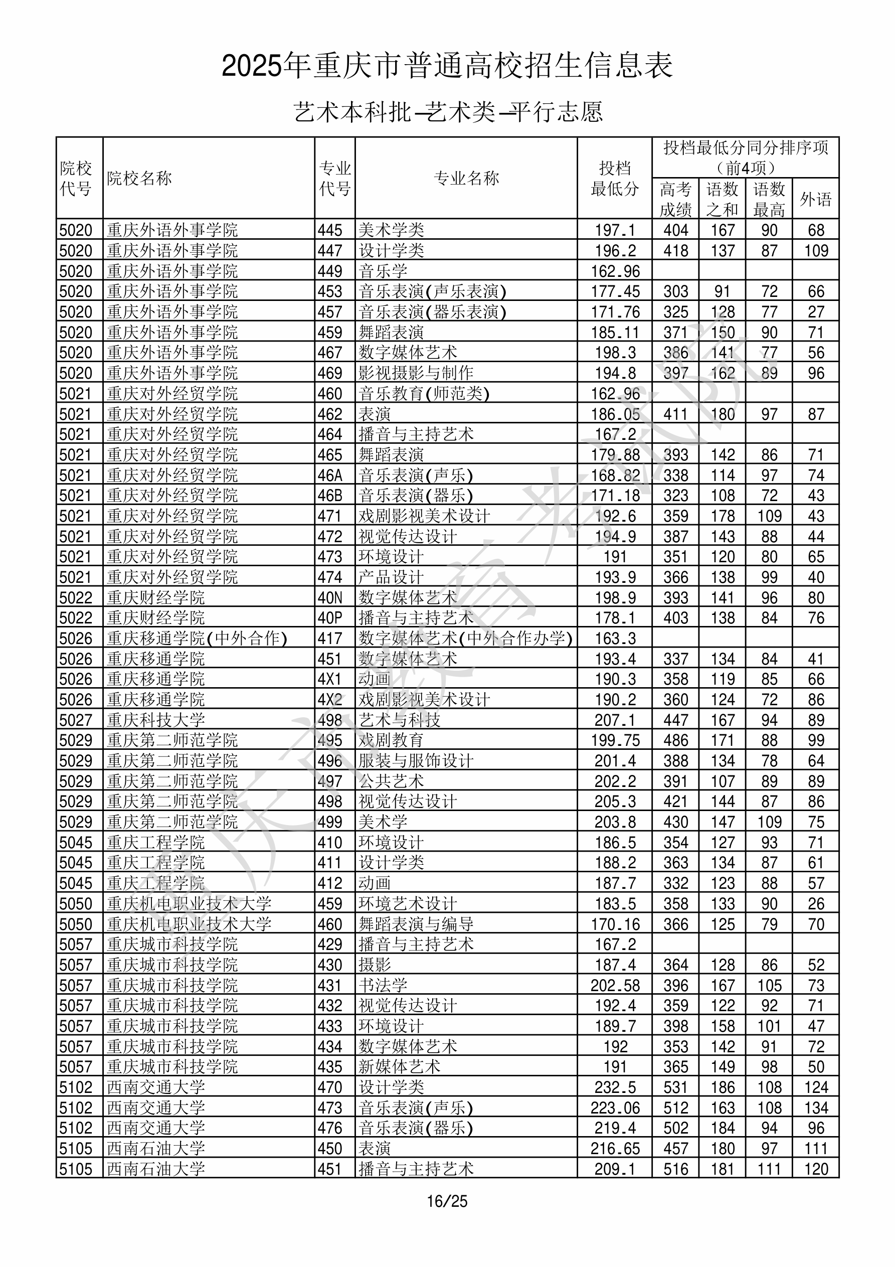 2025年重庆高考艺术类本科批播音与主持类 重庆财经学院 的 播音与主持艺术 专业录取分数溯源信息