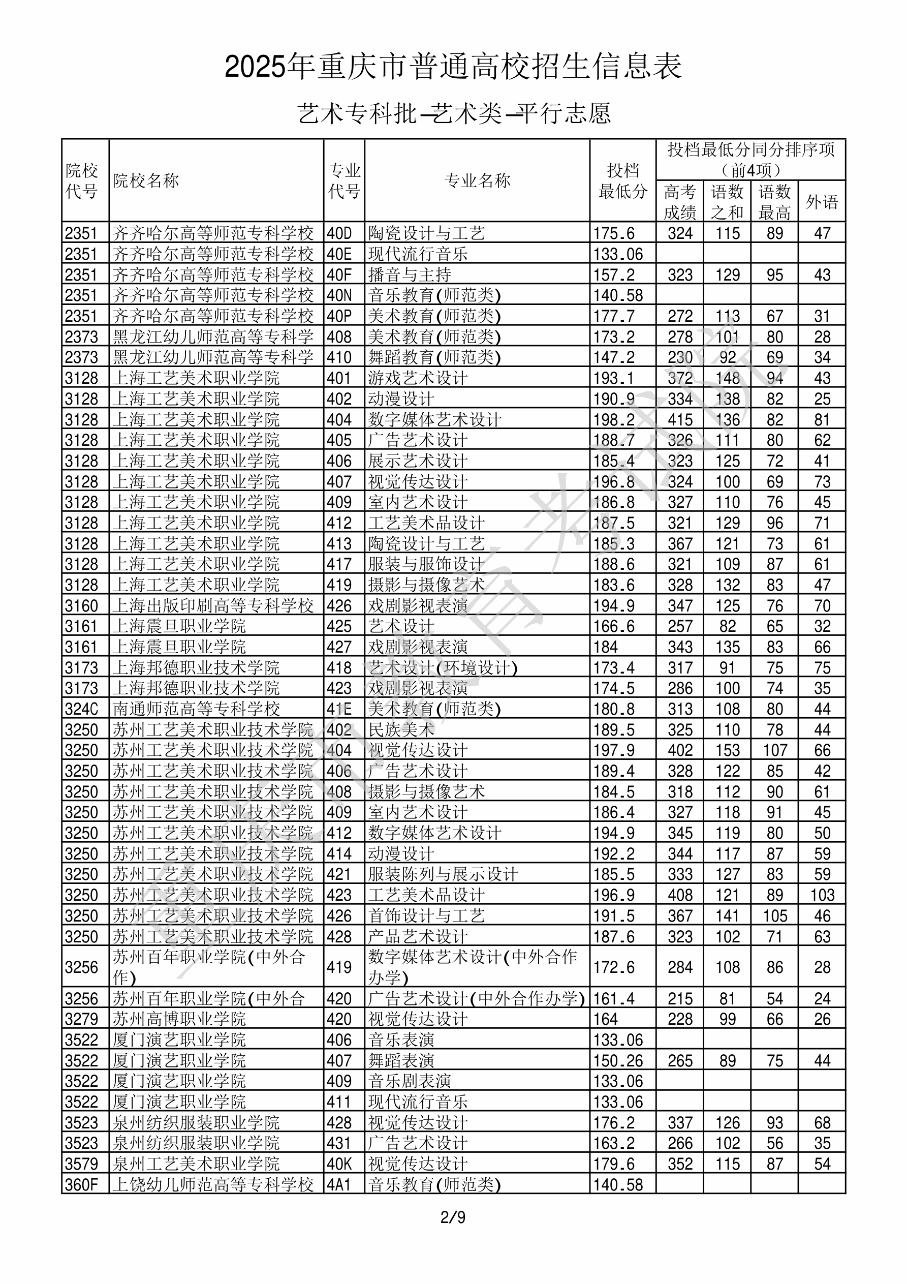 2025年重庆高考艺术类高职(专科)批美术与设计类 苏州工艺美术职业技术学院 的 广告艺术设计 专业录取分数溯源信息