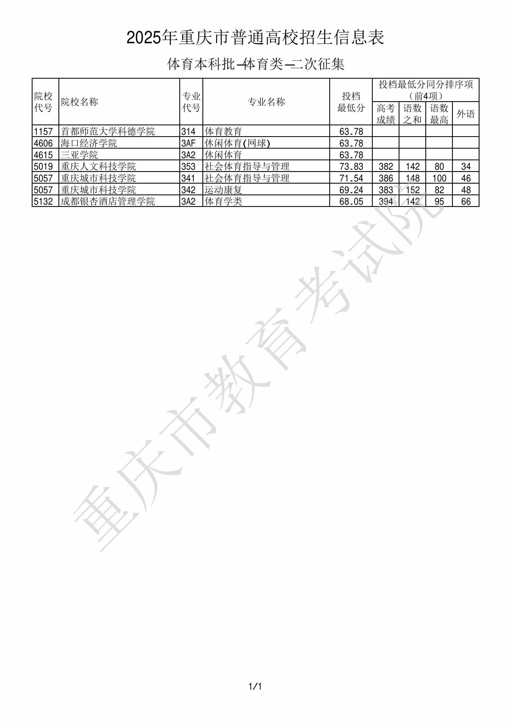 2025年重庆高考体育类本科批 首都师范大学科德学院 的 体育教育 专业录取分数溯源信息