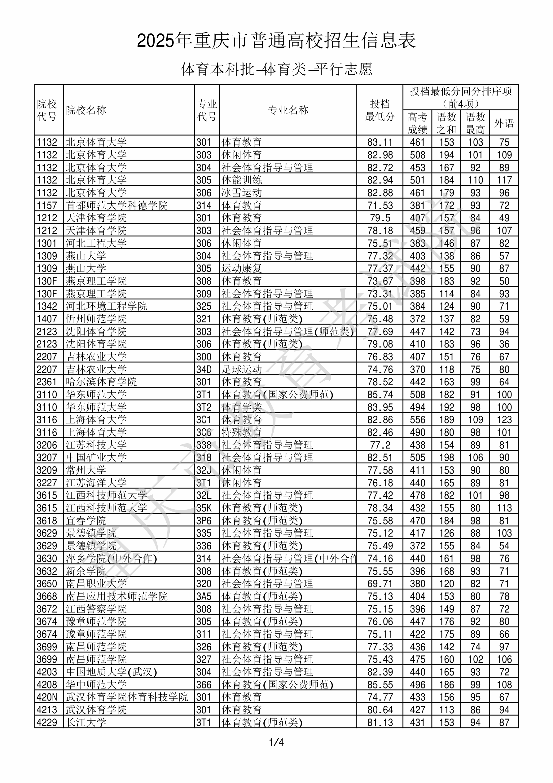 2025年重庆高考体育类本科批 哈尔滨体育学院 的 体育教育 专业录取分数溯源信息