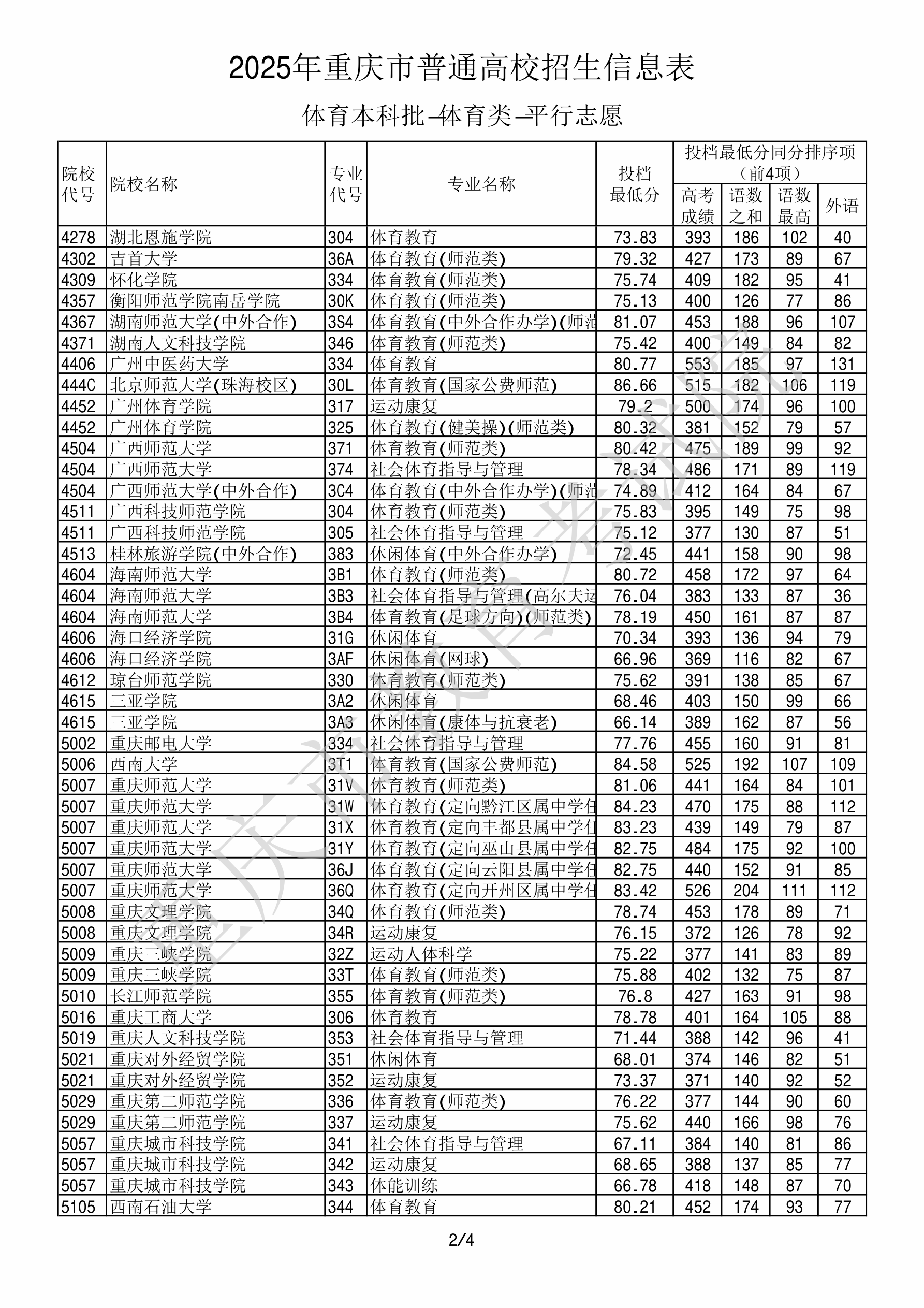 2025年重庆高考体育类本科批 西南大学 的 体育教育 专业录取分数溯源信息