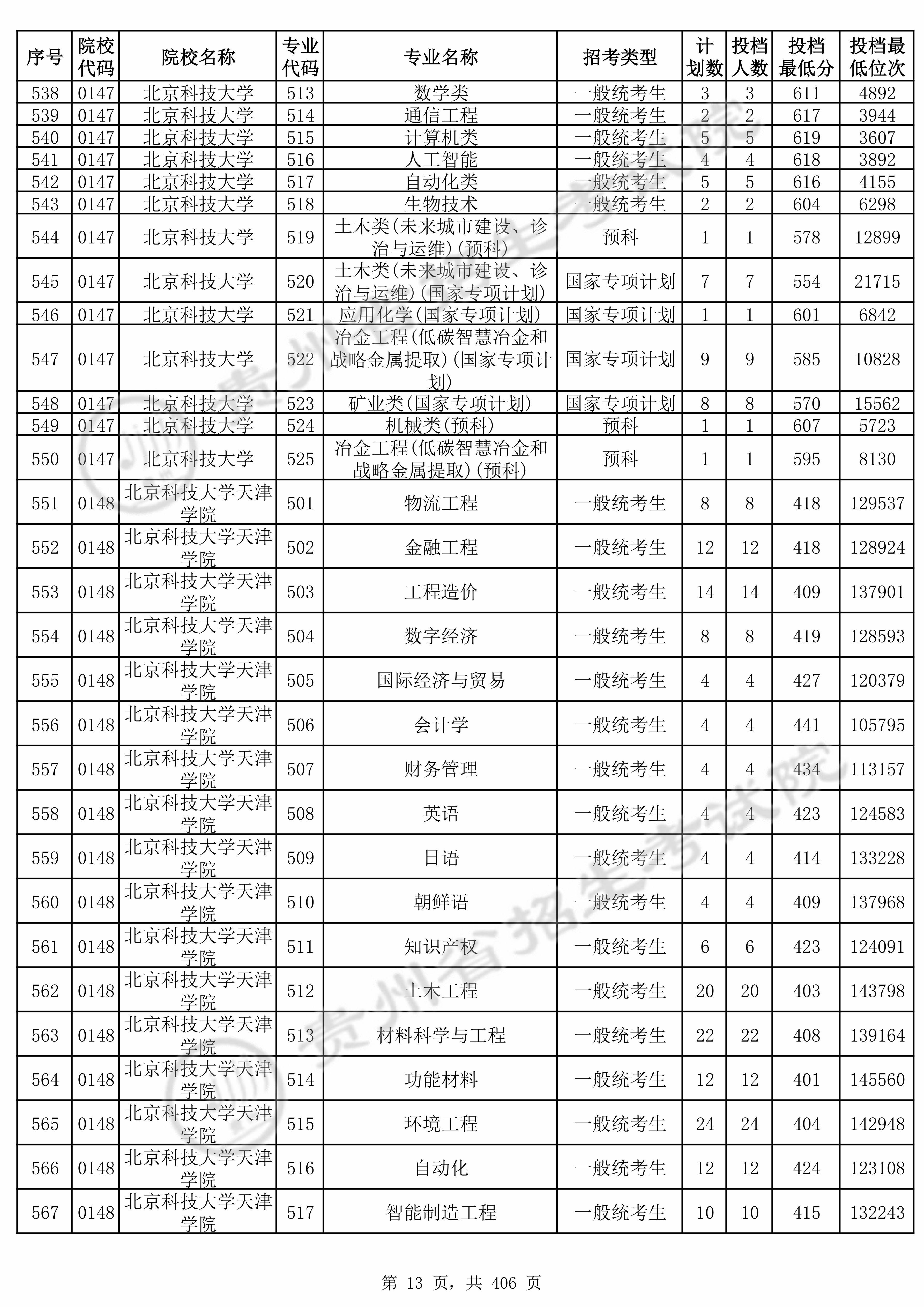2025年贵州高考普通类本科批 北京科技大学天津学院 的 环境工程 专业录取分数溯源信息
