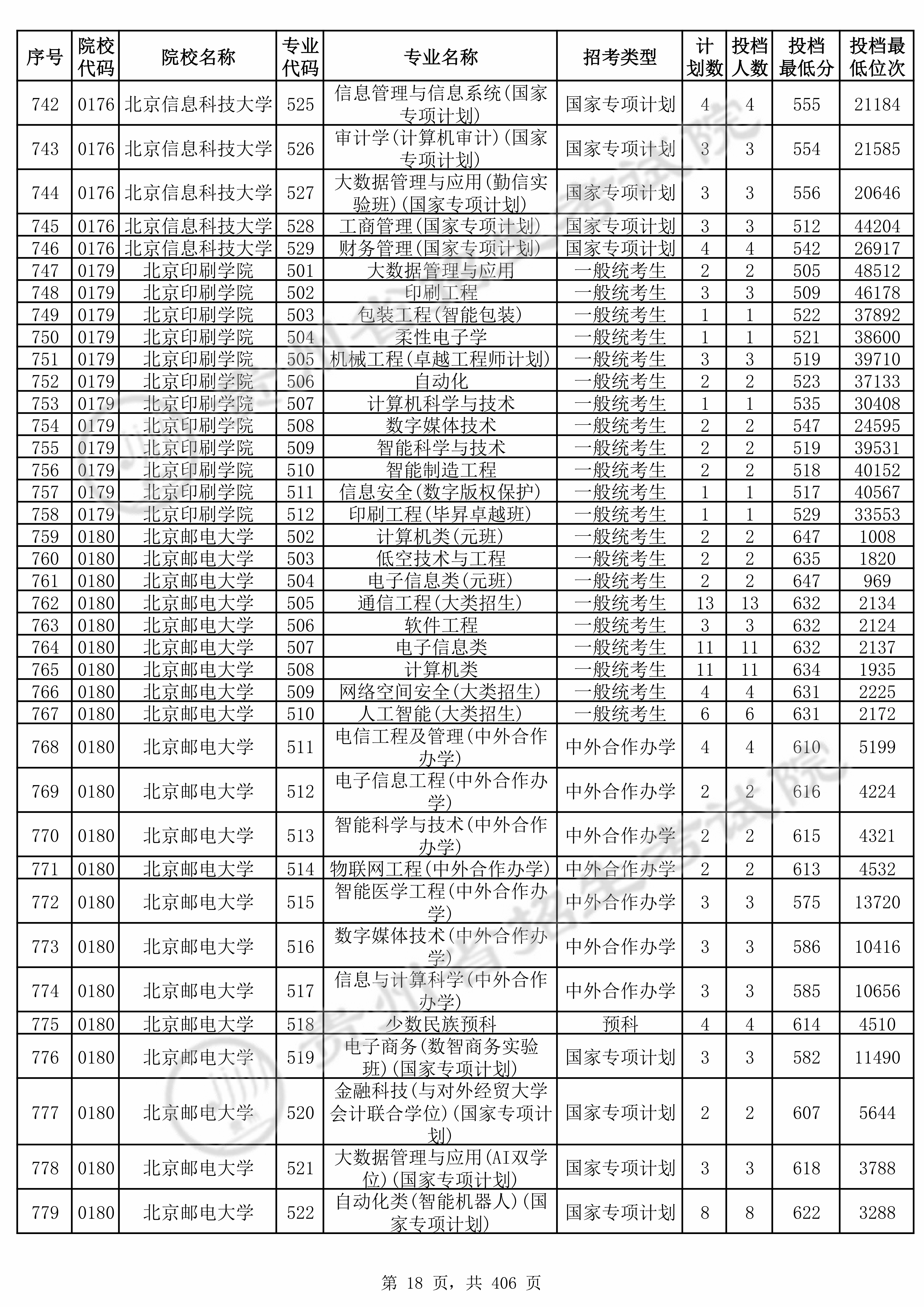 | 0176 | 北京信息科技大学 | 527 | 大数据管理与应用(勤信实验班)(国家专项计划) | 556 | 20646 | 本科 | 物理 ,再选: 不限 | 1 |