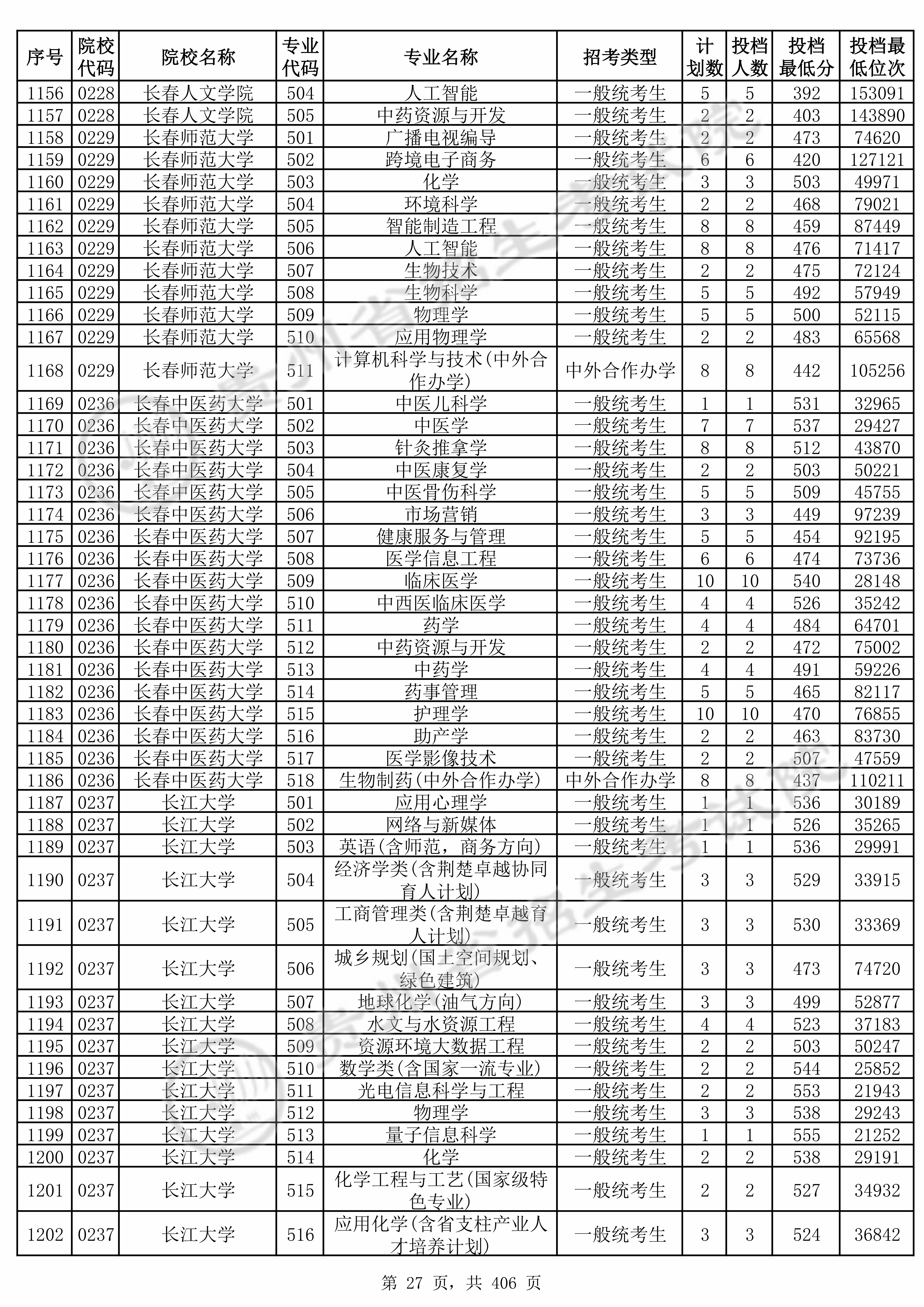 | 院校代码 | 院校名称 | 专业代码 | 专业名称 | 最低分数 | 最低位次 | 专业层次 | 限考科目 | 投档 |