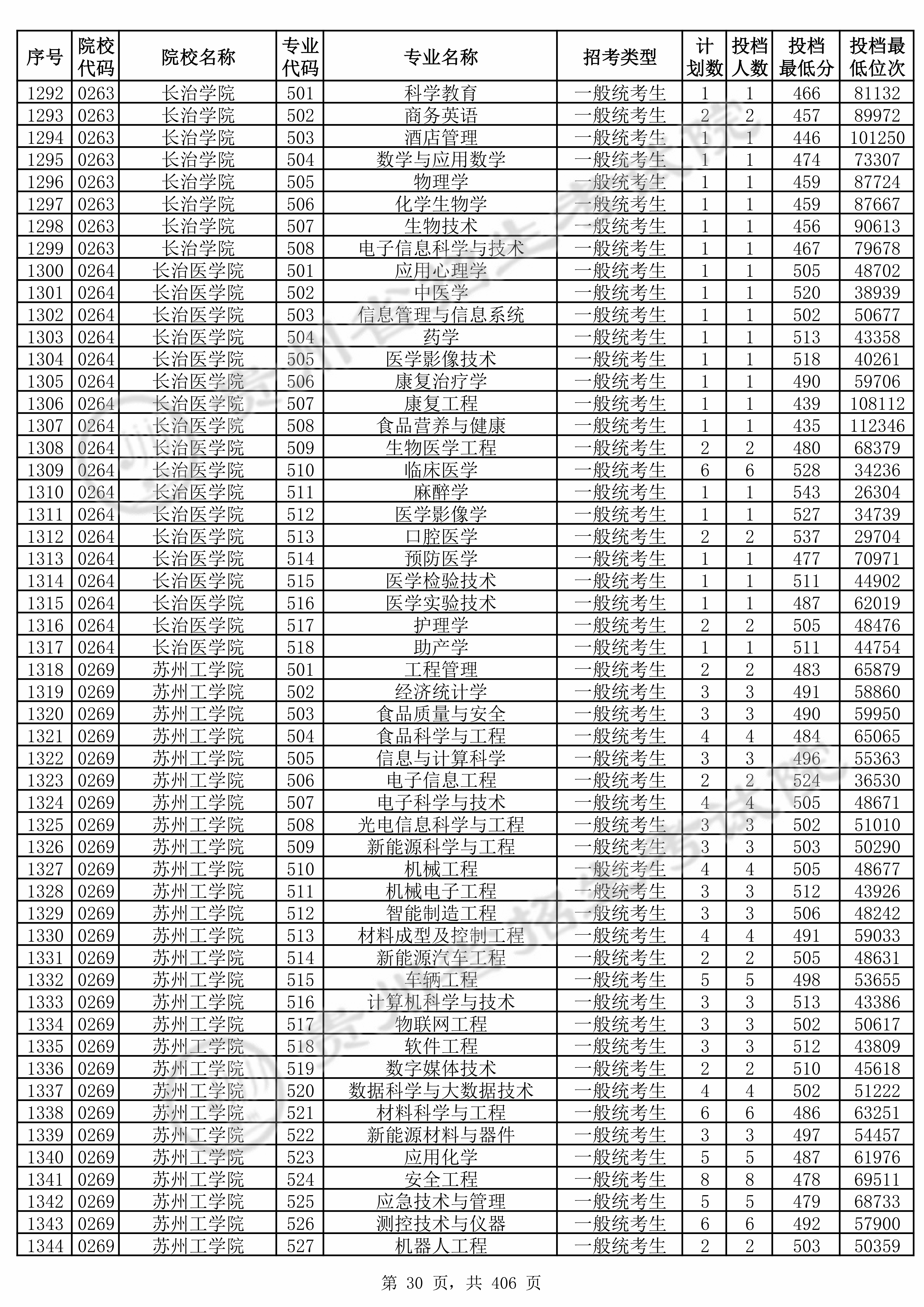 | 院校代码 | 院校名称 | 专业代码 | 专业名称 | 最低分数 | 最低位次 | 专业层次 | 限考科目 | 投档 |