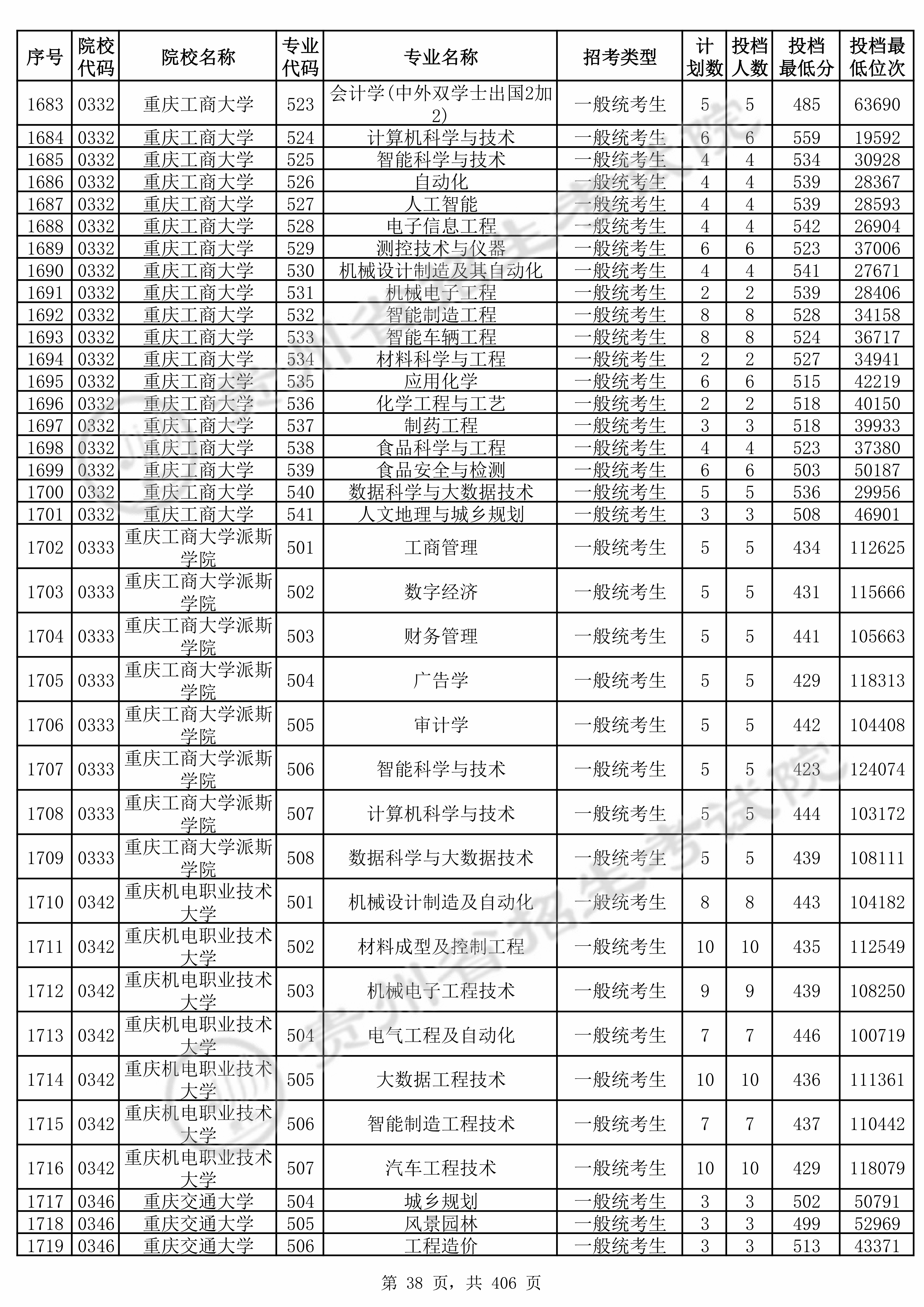 2025年贵州高考普通类本科批 重庆工商大学派斯学院 的 工商管理 专业录取分数溯源信息
