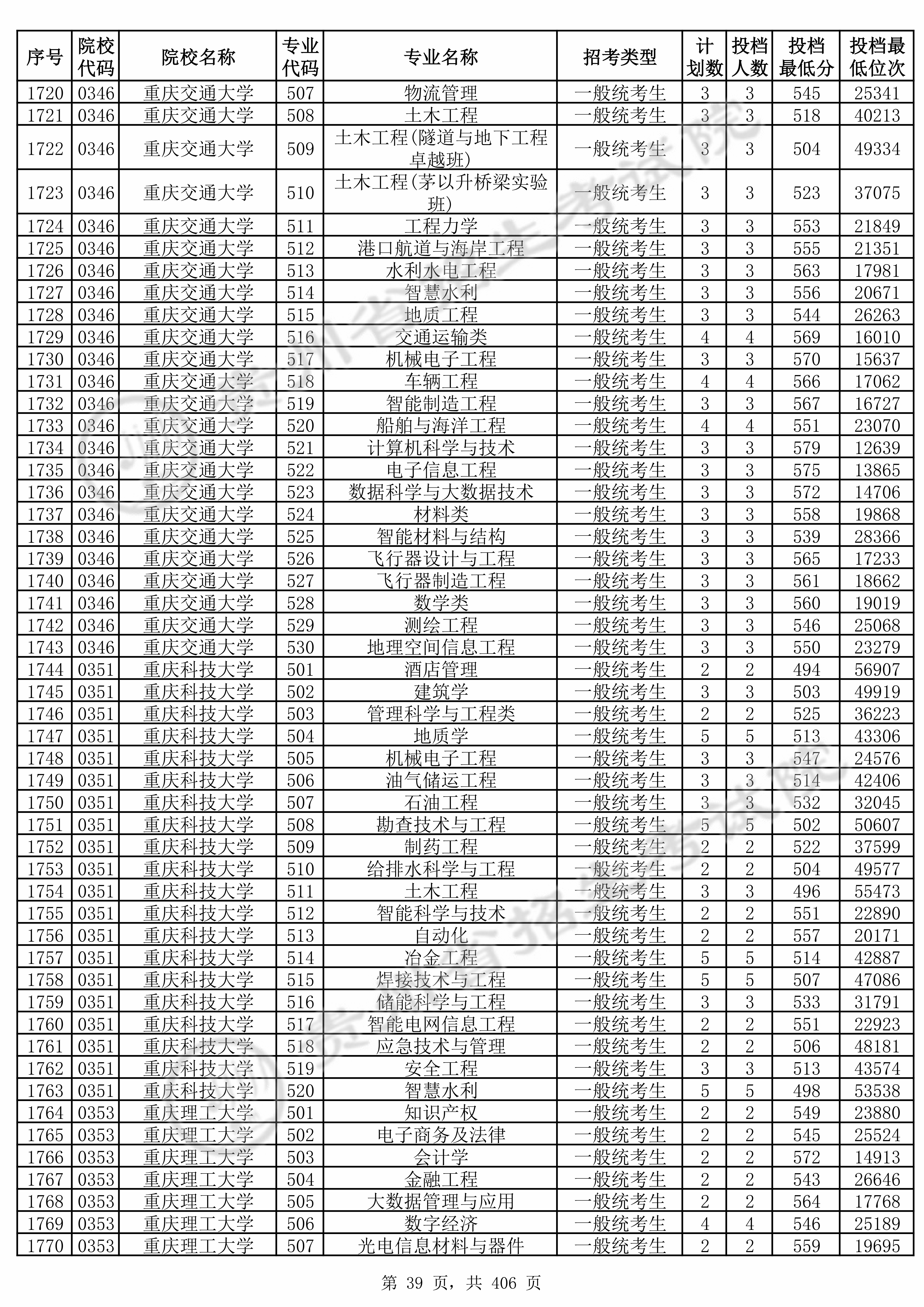 | 0346 | 重庆交通大学 | 526 | 飞行器设计与工程 | 565 | 17233 | 本科 | 物理 ,再选: 化学 | 1 |