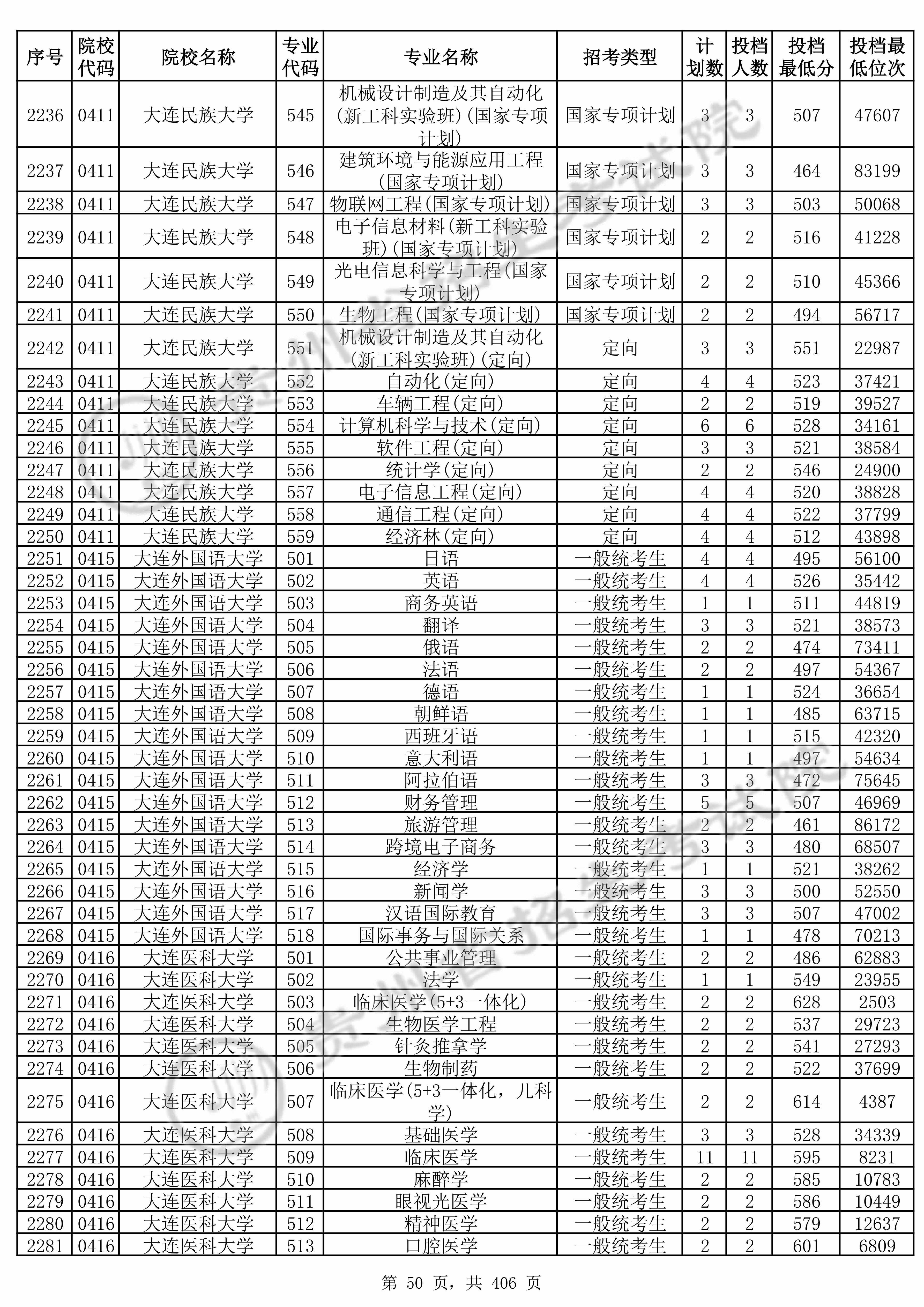 | 0411 | 大连民族大学 | 549 | 光电信息科学与工程(国家专项计划) | 510 | 45366 | 本科 | 物理 ,再选: 化学 | 1 |