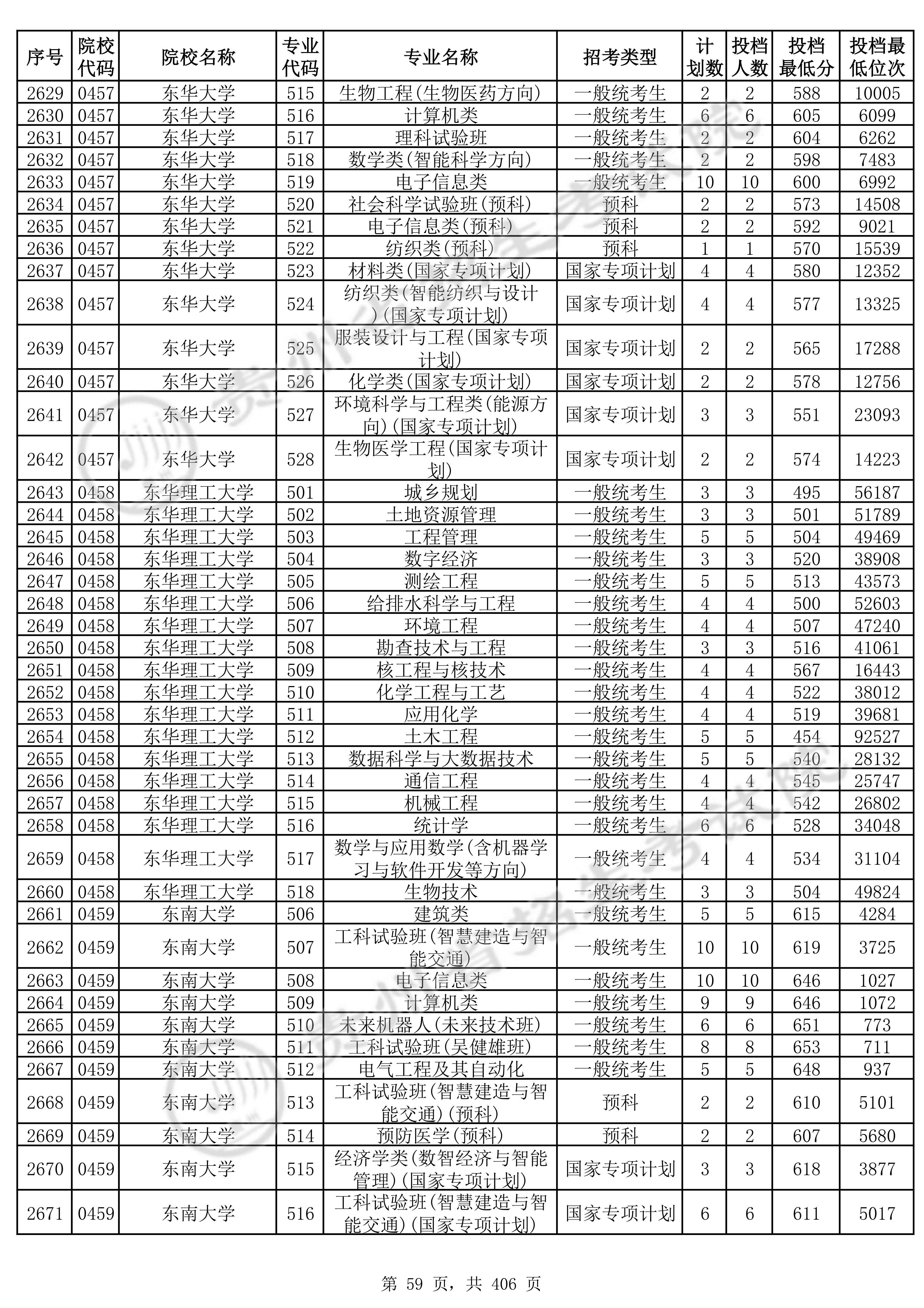| 0459 | 东南大学 | 506 | 建筑类 | 615 | 4284 | 本科 | 物理 ,再选: 化学 | 1 |
