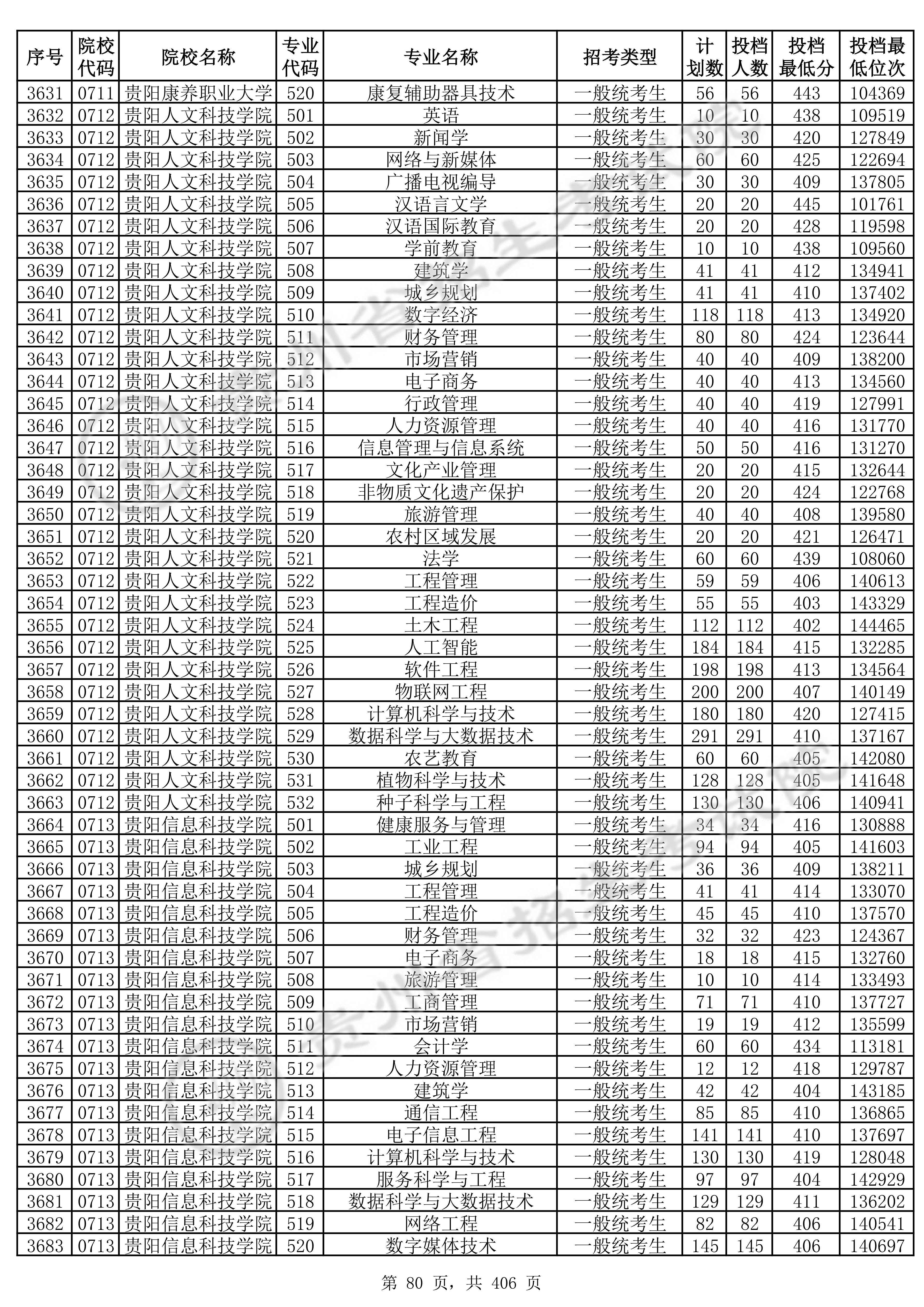 2025年贵州高考普通类本科批 贵阳信息科技学院 的 健康服务与管理 专业录取分数溯源信息