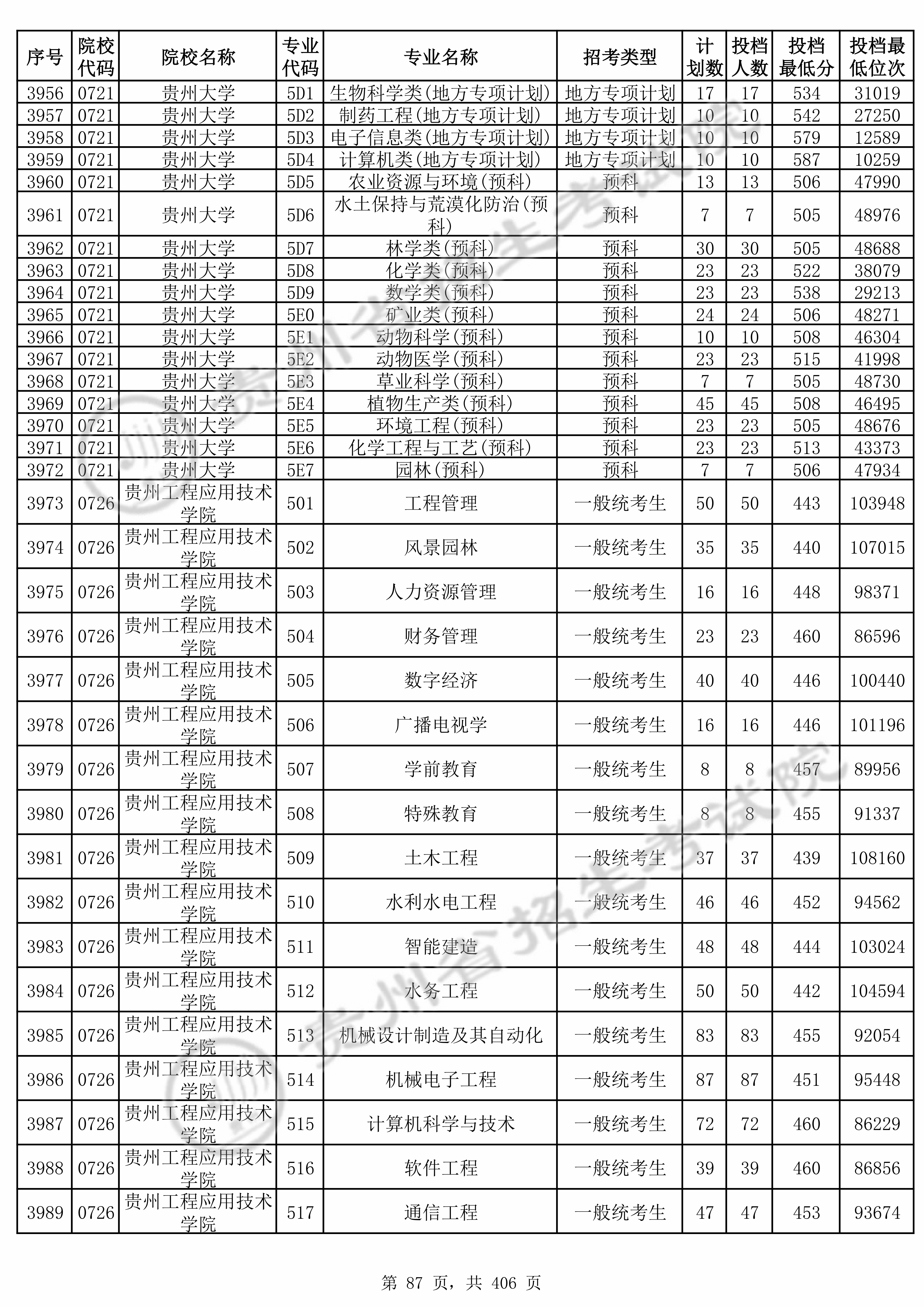 | 0726 | 贵州工程应用技术学院 | 511 | 智能建造 | 444 | 103024 | 本科 | 物理 ,再选: 化学 | 1 |