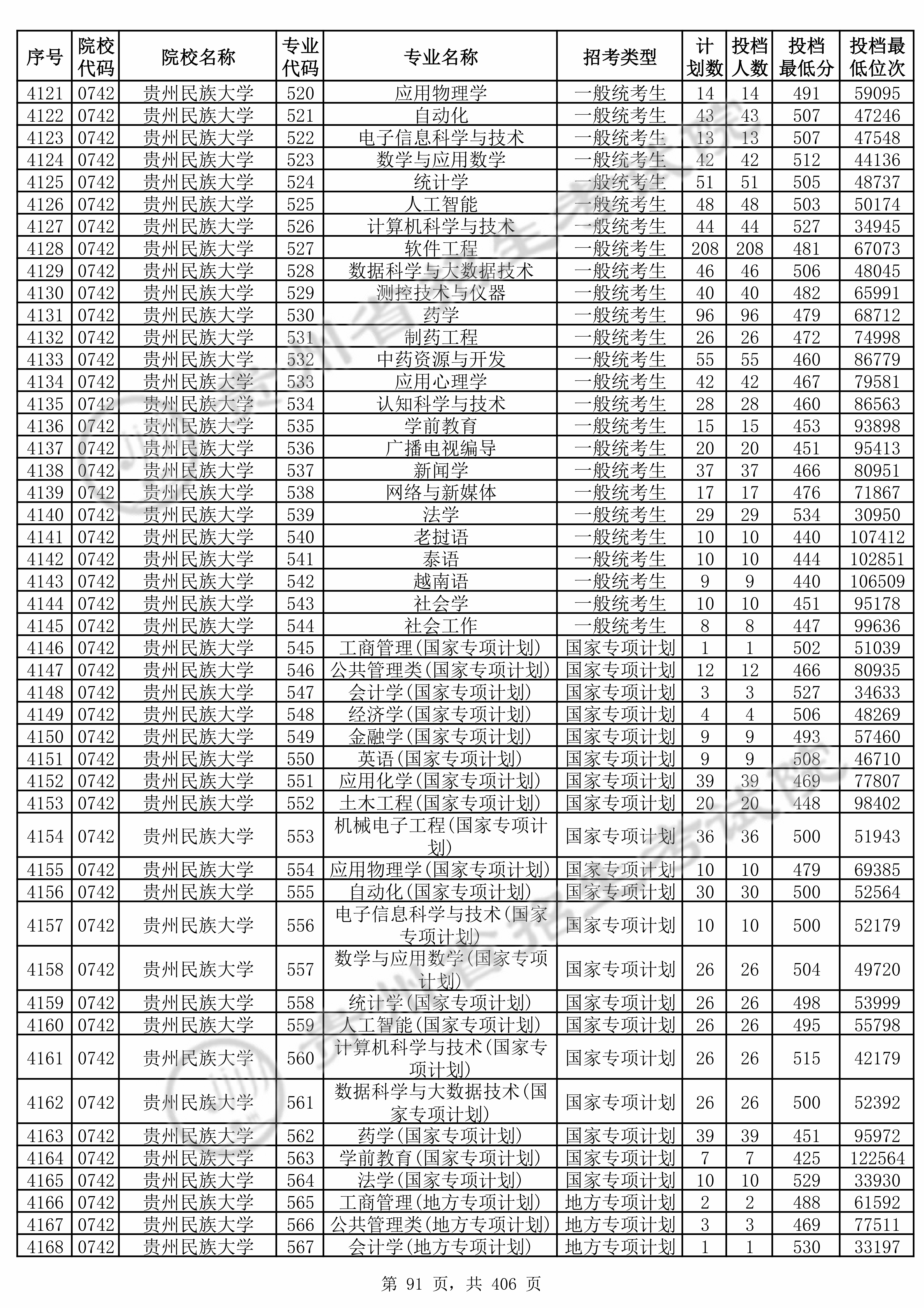| 0742 | 贵州民族大学 | 539 | 法学 | 534 | 30950 | 本科 | 物理 ,再选: 思想政治 | 1 |