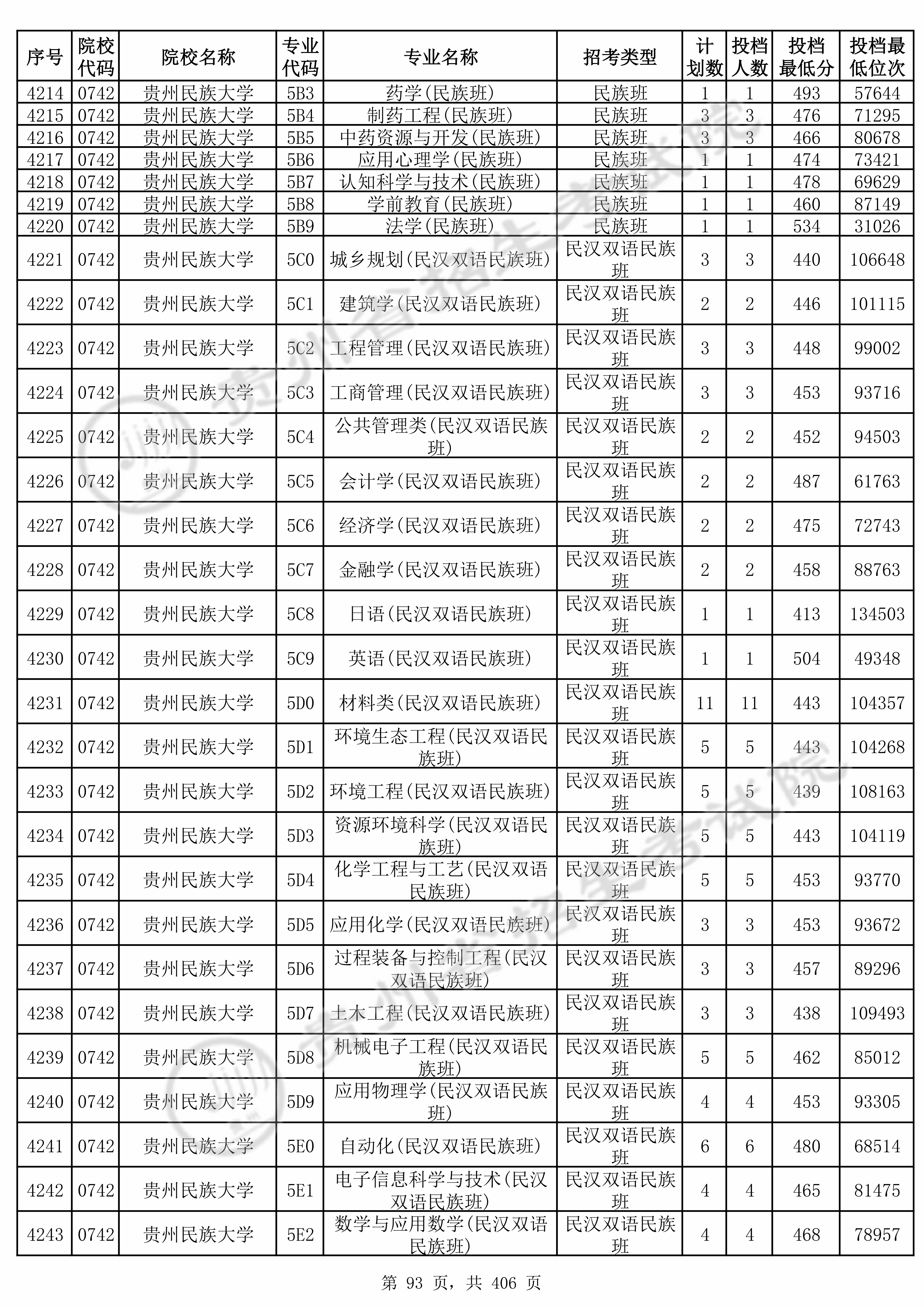 2025年贵州高考普通类本科批 贵州民族大学 的 过程装备与控制工程 专业录取分数溯源信息