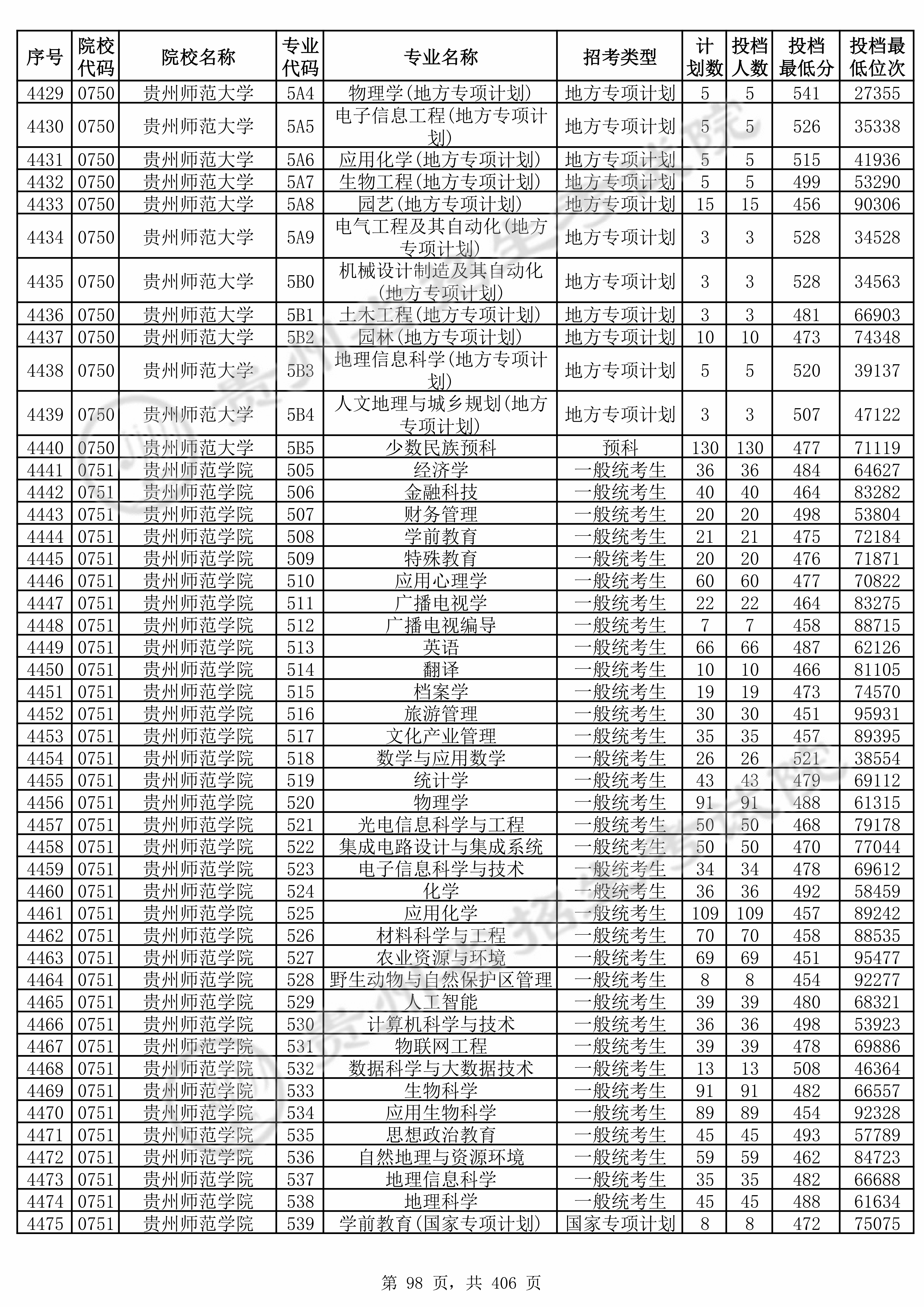 2025年贵州高考普通类本科批 贵州师范大学 的 地理信息科学 专业录取分数溯源信息