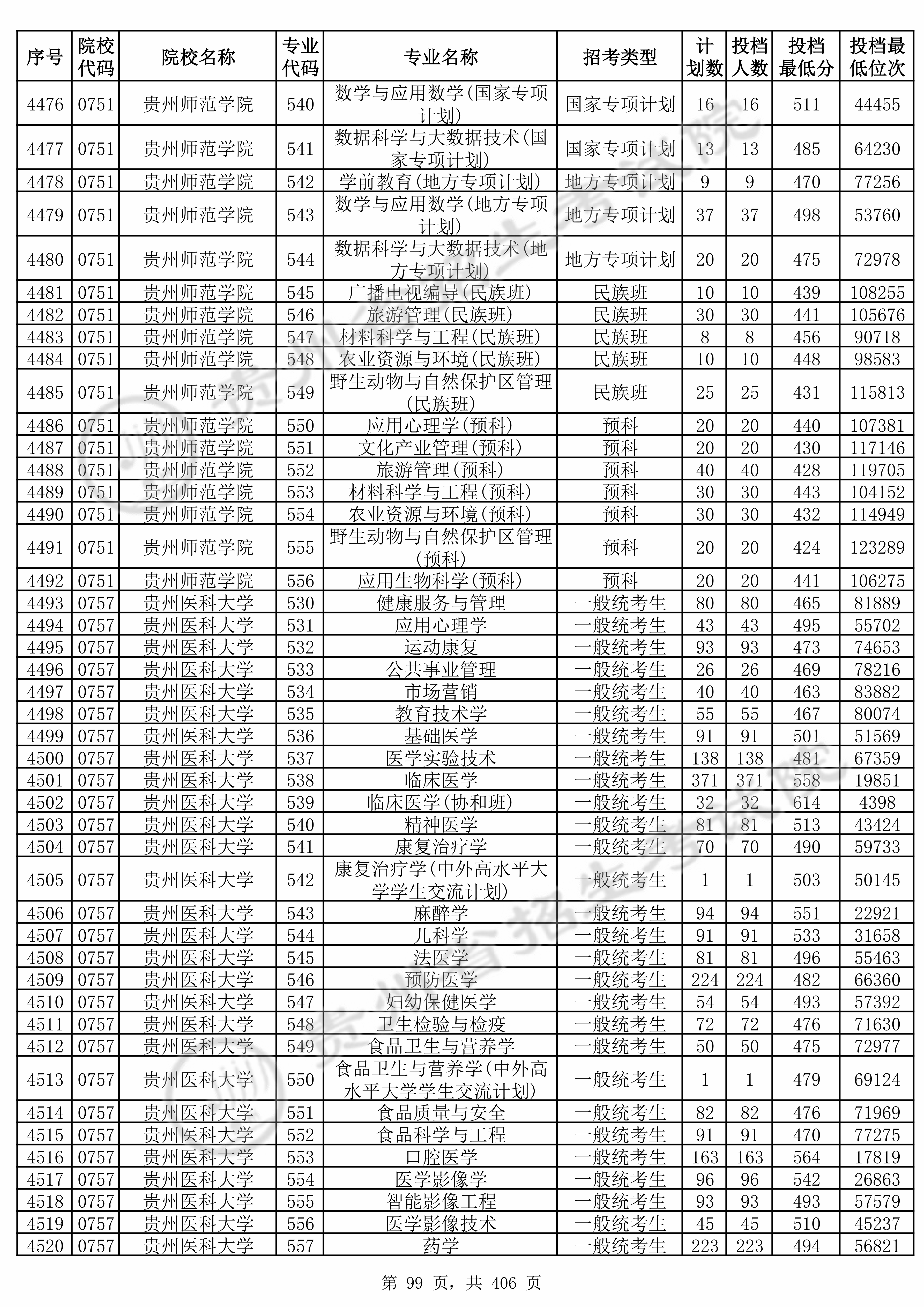 | 0757 | 贵州医科大学 | 551 | 食品质量与安全 | 476 | 71969 | 本科 | 物理 ,再选: 化学 | 1 |