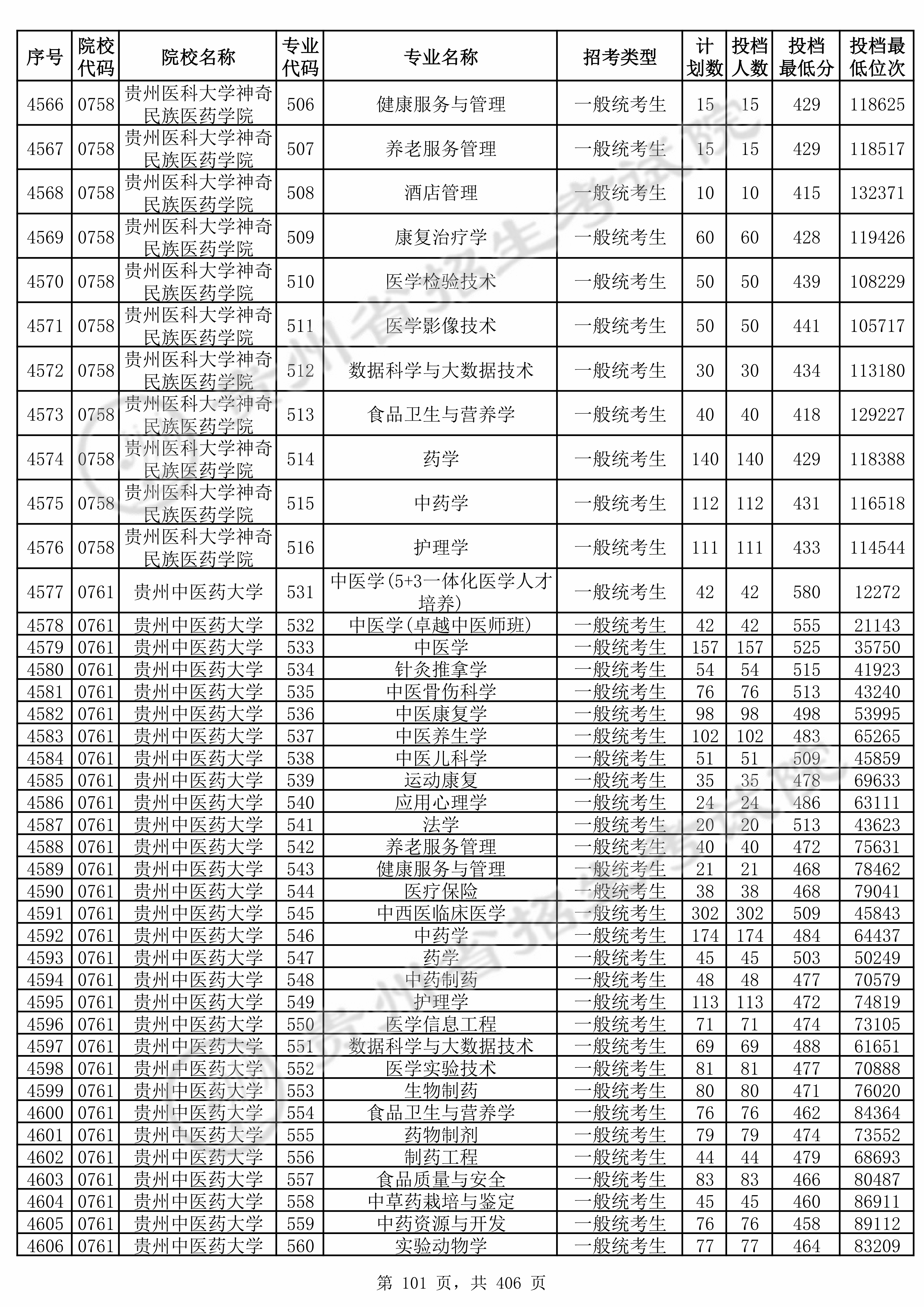 | 0758 | 贵州医科大学神奇民族医药学院 | 506 | 健康服务与管理 | 429 | 118625 | 本科 | 物理 ,再选: 不限 | 1 |