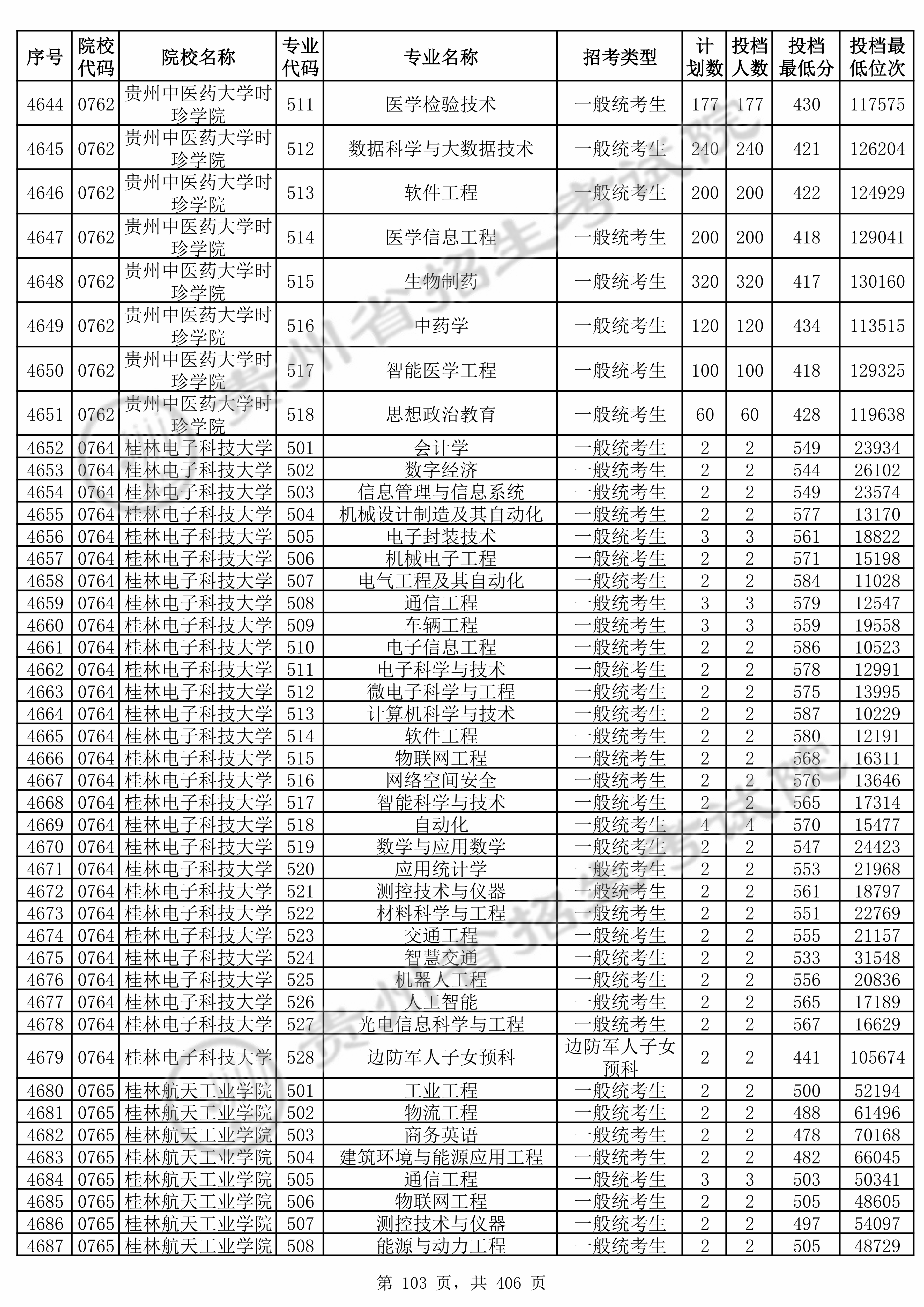 2025年贵州高考普通类本科批 桂林电子科技大学 的 电子科学与技术 专业录取分数溯源信息