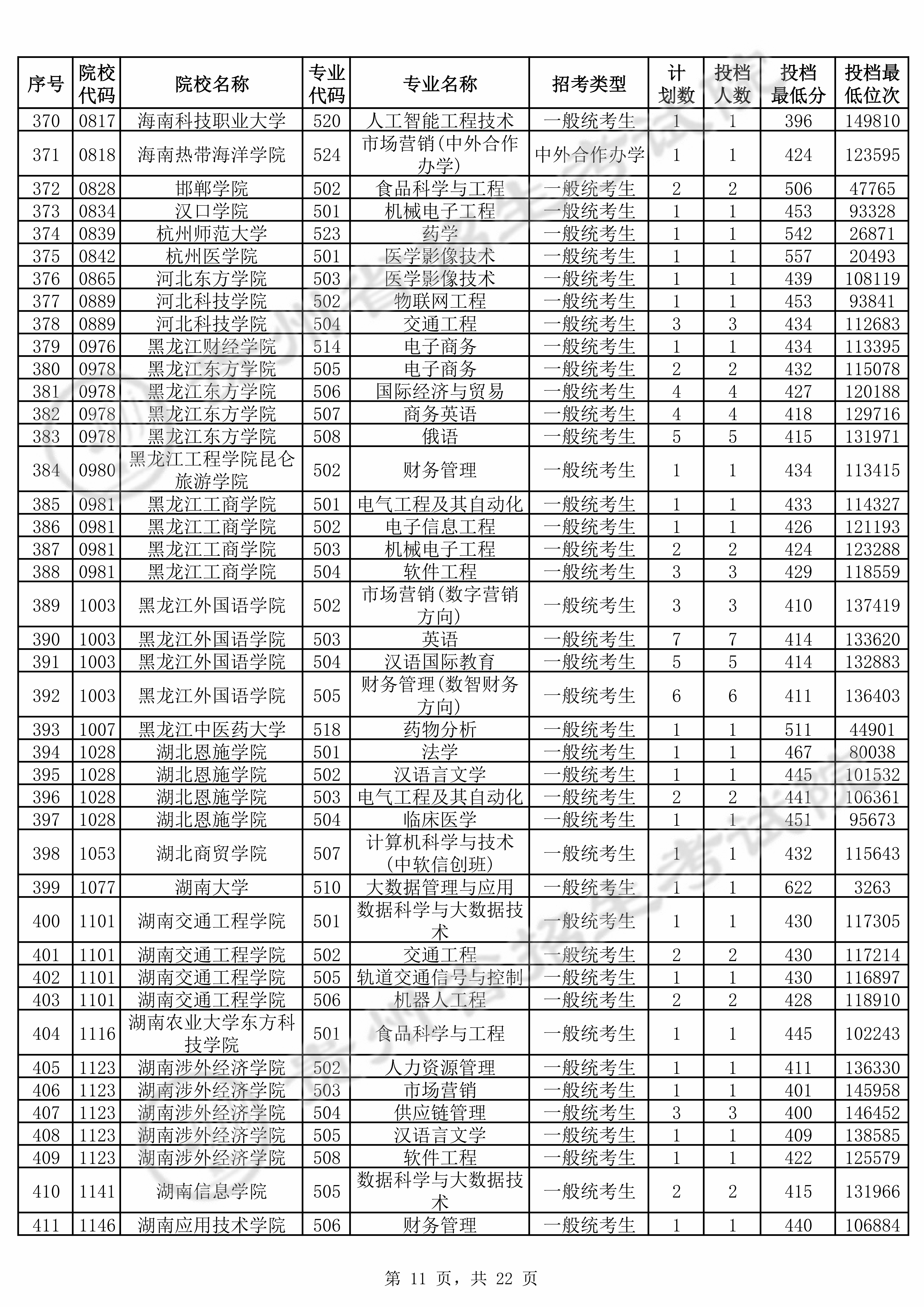| 院校代码 | 院校名称 | 专业代码 | 专业名称 | 最低分数 | 最低位次 | 专业层次 | 限考科目 | 投档 |