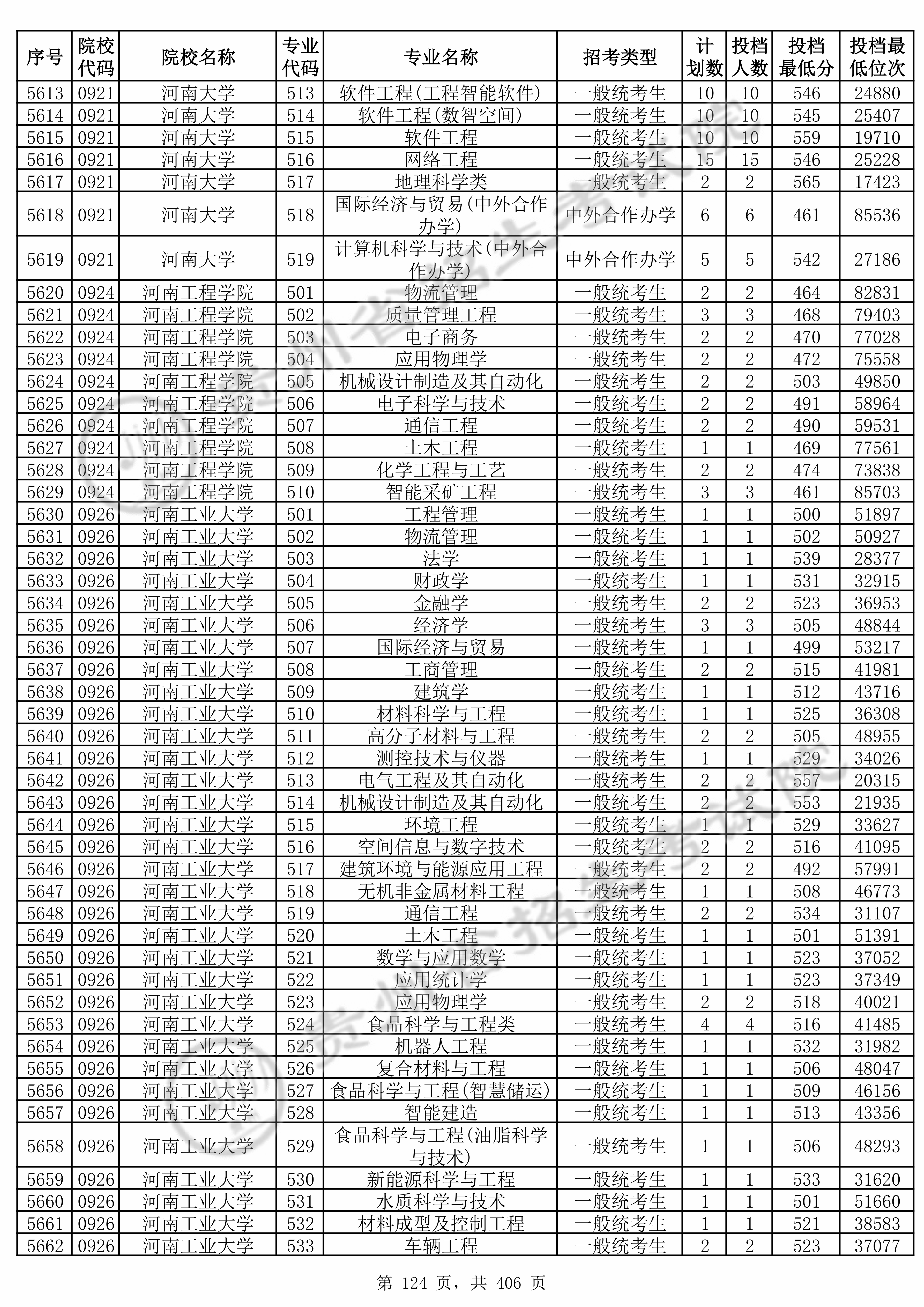 2025年贵州高考普通类本科批 河南工业大学 的 高分子材料与工程 专业录取分数溯源信息