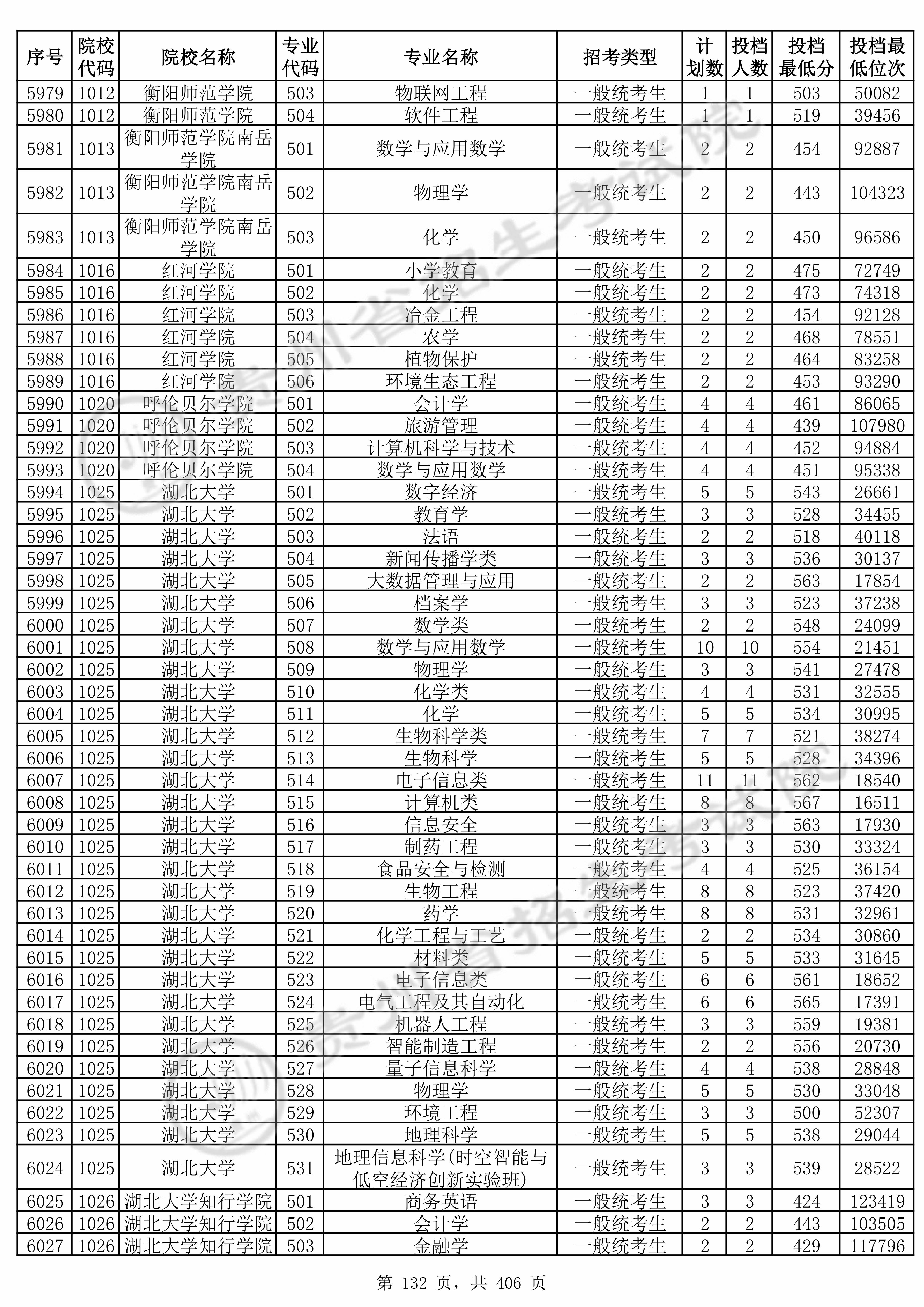 2025年贵州高考普通类本科批 湖北大学 的 大数据管理与应用 专业录取分数溯源信息
